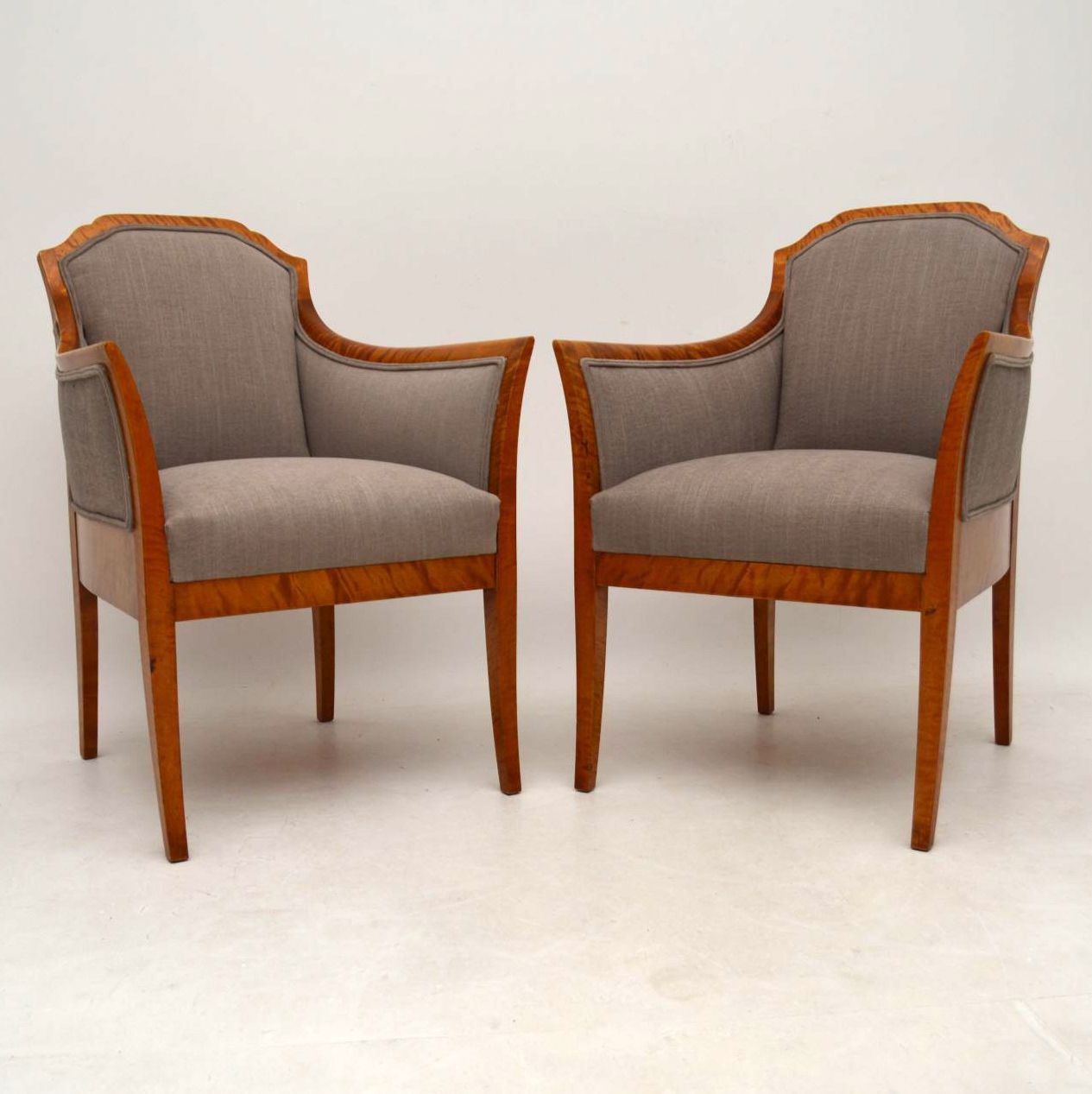 Pair of Antique Swedish Satin Birch Armchairs C.1890