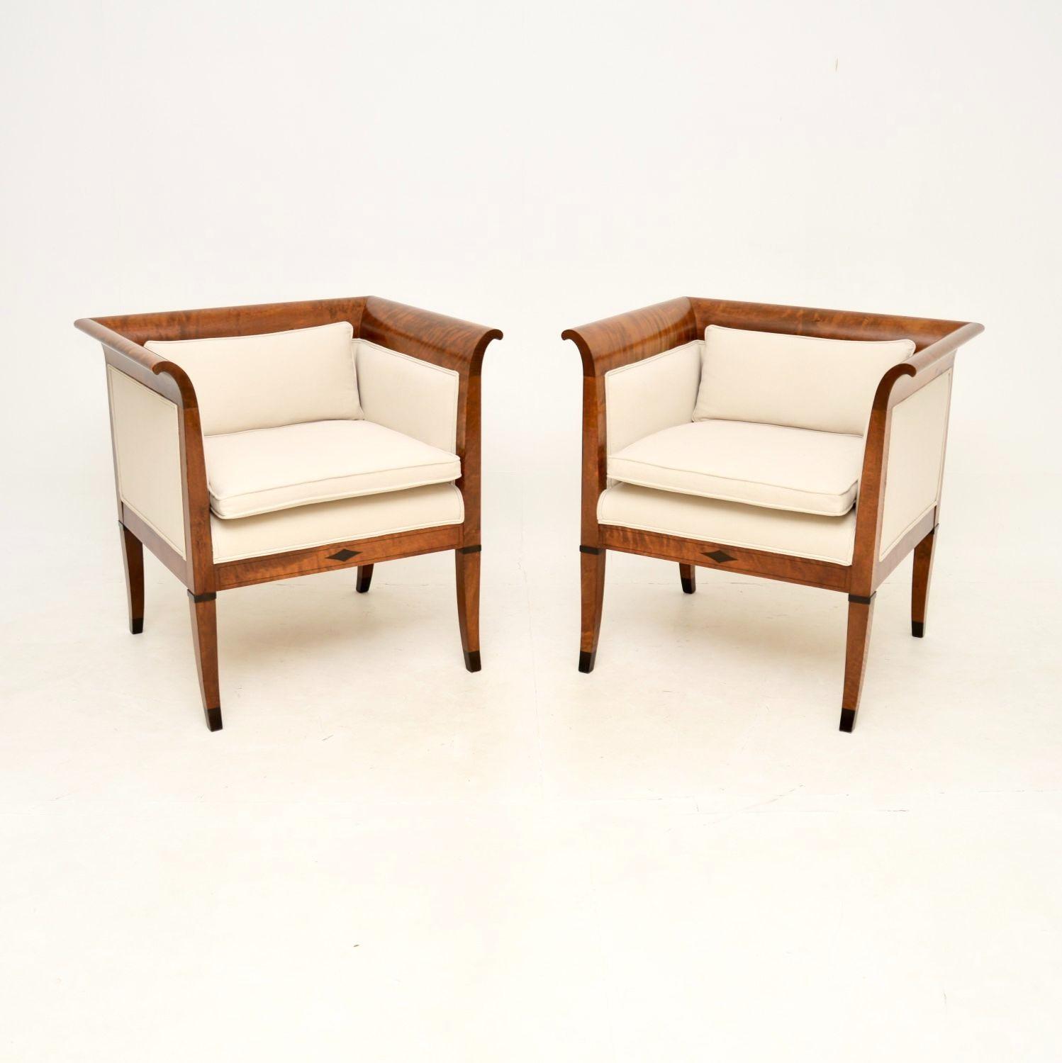 Pair of Antique Swedish Satin Birch Biedermeier Armchairs