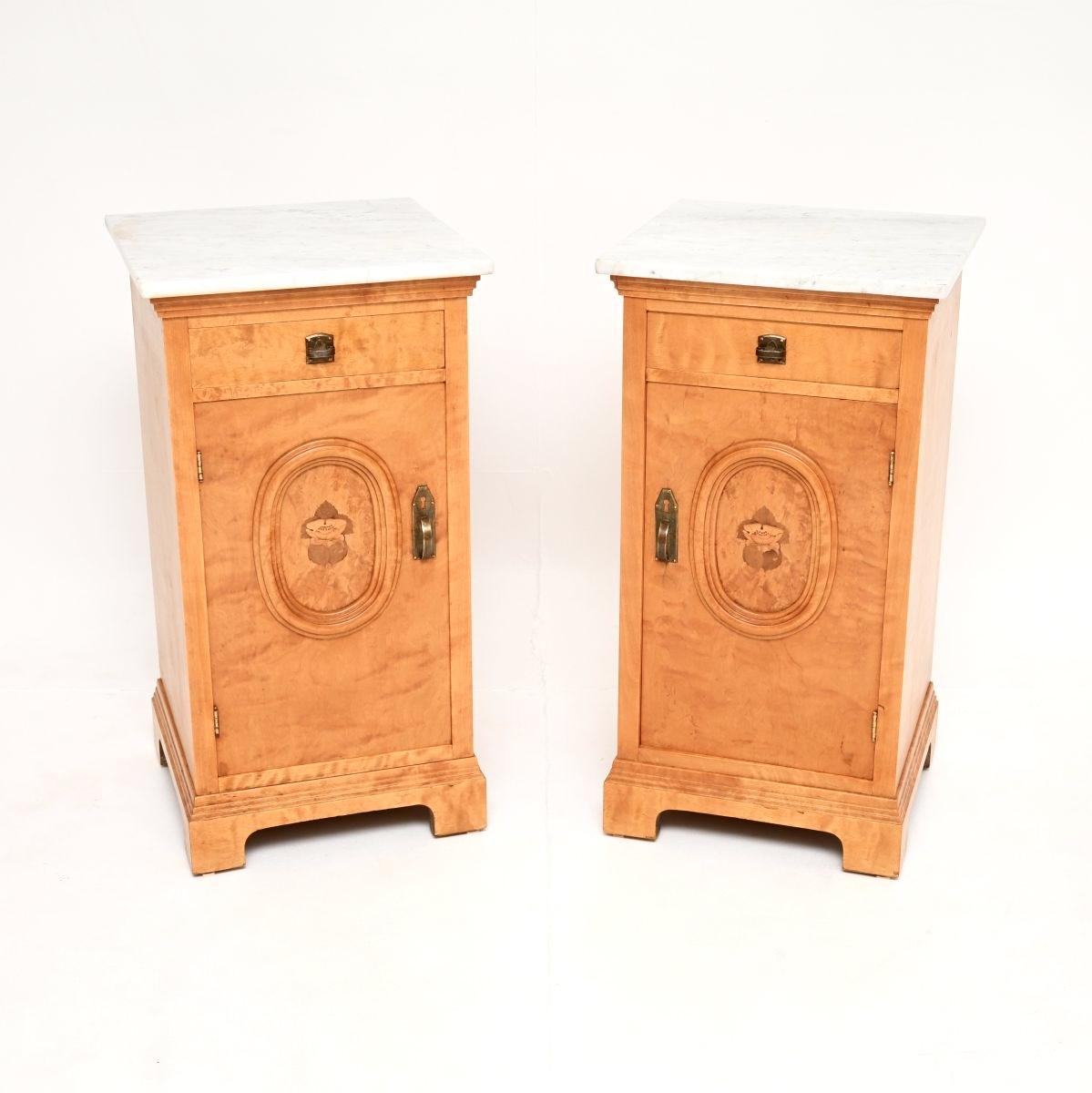 Pair of Antique Swedish Satin Birch Marble Top Bedside Cabinets