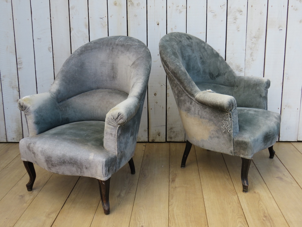 Pair of Antique Tub Chairs For Re-Upholstery