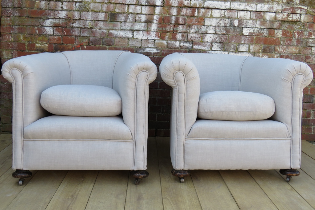 Pair of Antique Tub Chairs Re-Upholstered in Linen