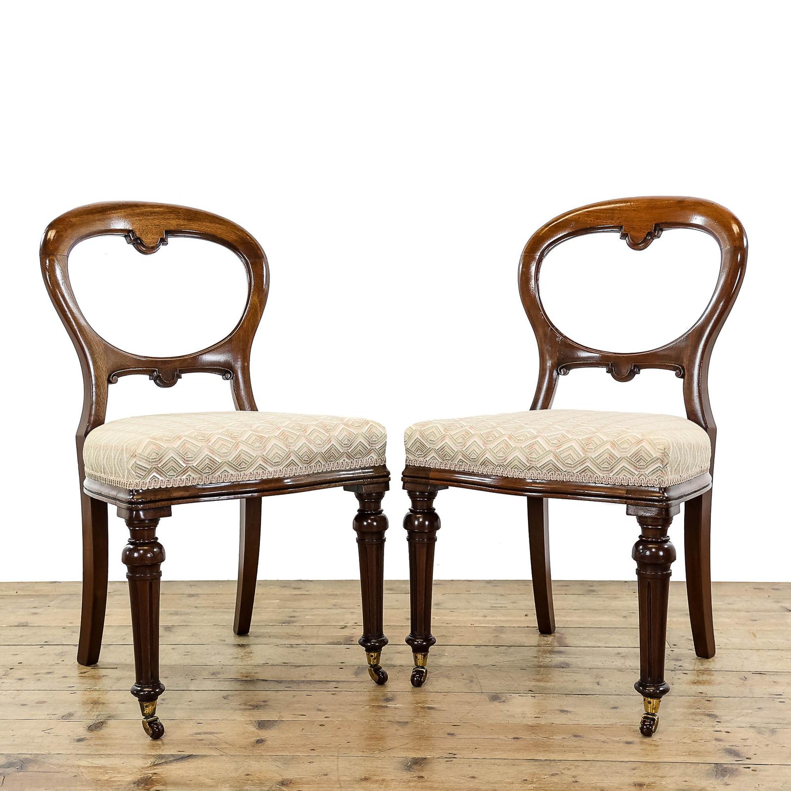 Pair of Antique Upholstered Mahogany Balloon Back Chairs (1 of 8)