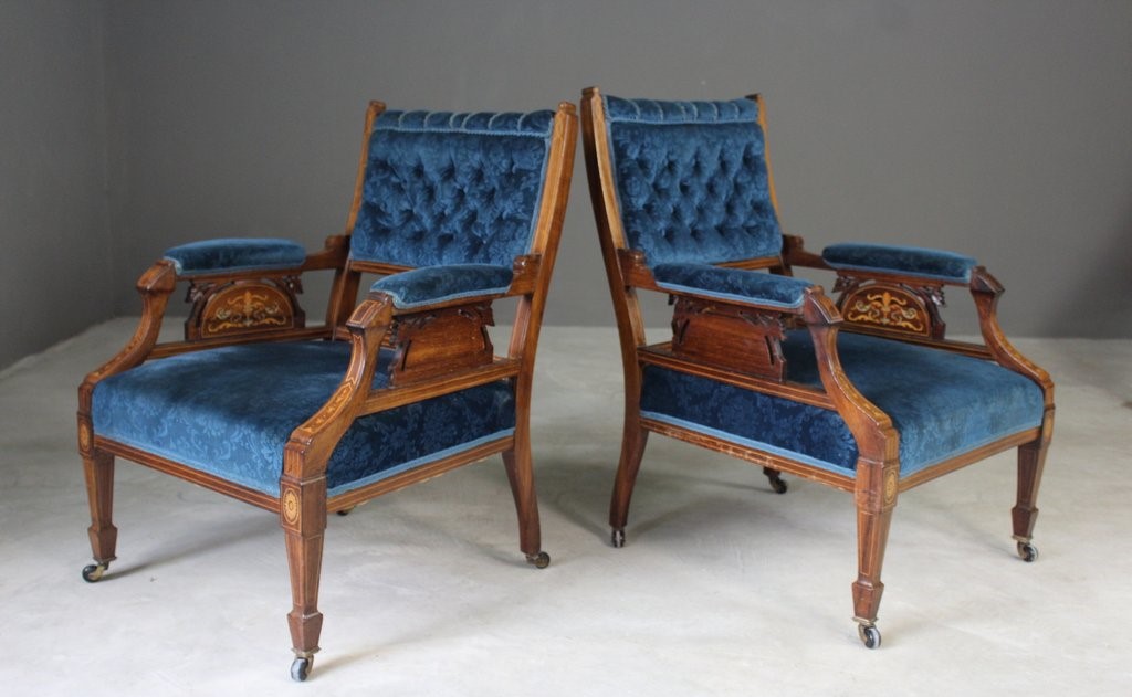 Pair of Antique Upholstered Rosewood Armchairs
