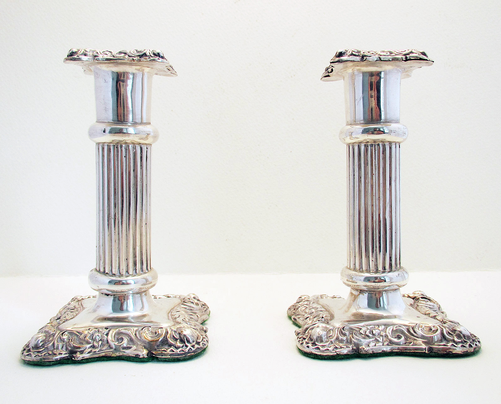 Pair of Antique Victorian 1900 Solid Sterling Silver English Candlesticks / Candle Holders. 4 1/2' Tall