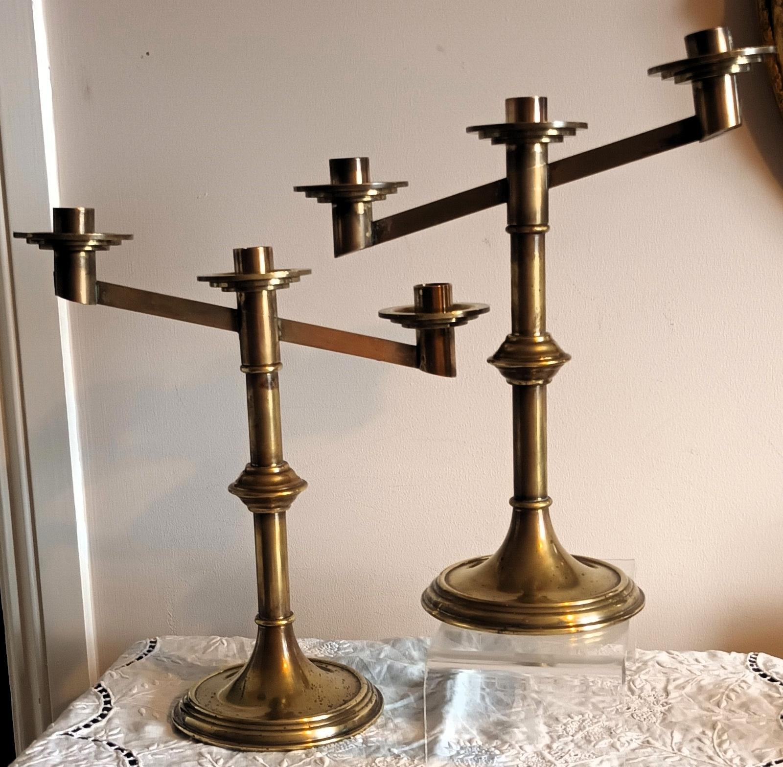 Pair of Antique Victorian Brass Altar Candelabras