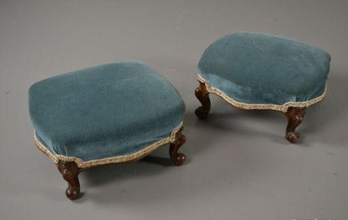 Pair of Antique Victorian Carved Walnut Footstools (1 of 1)