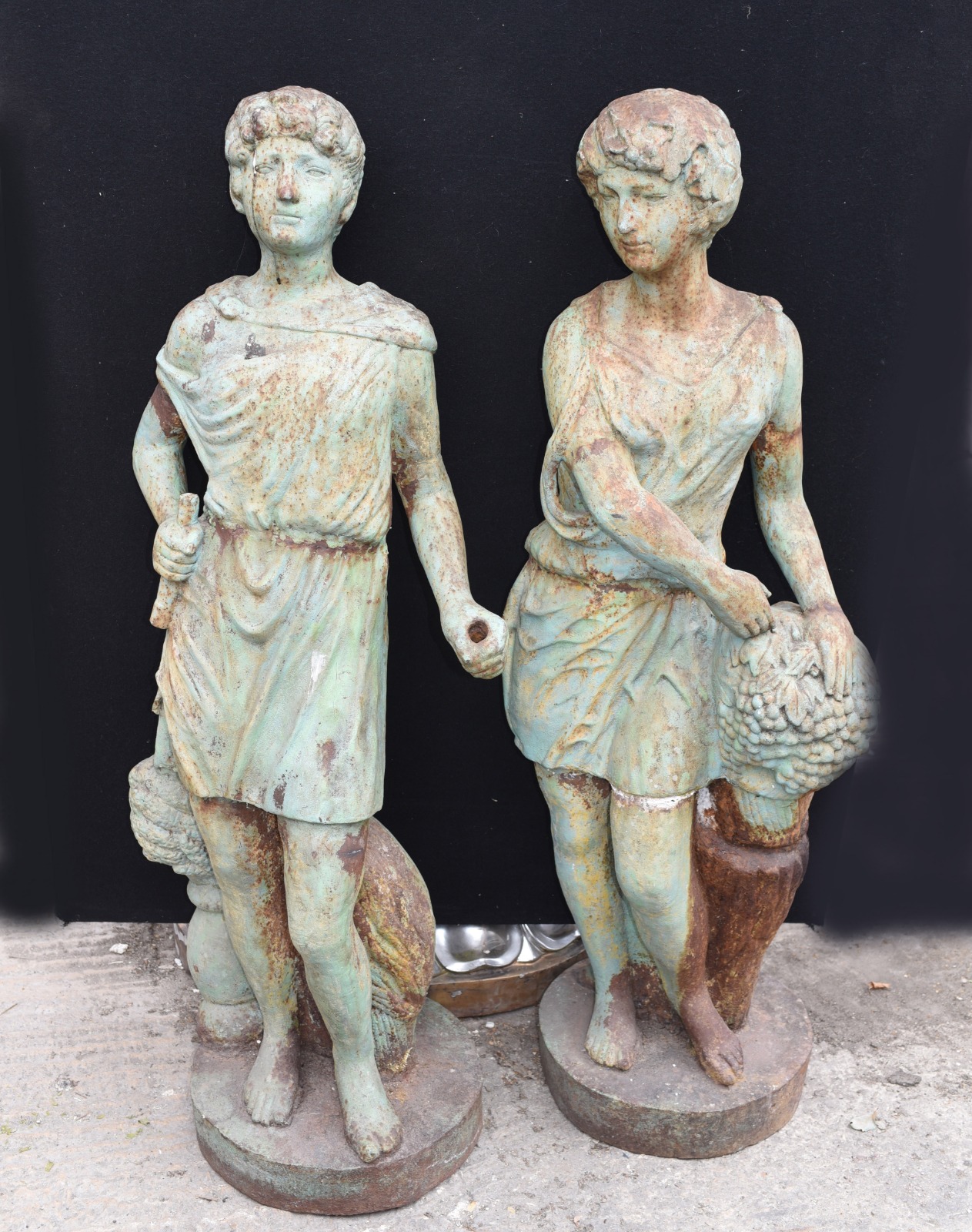 Pair of Antique Victorian Cast Iron Roman Garden Statues Figurines c.1860