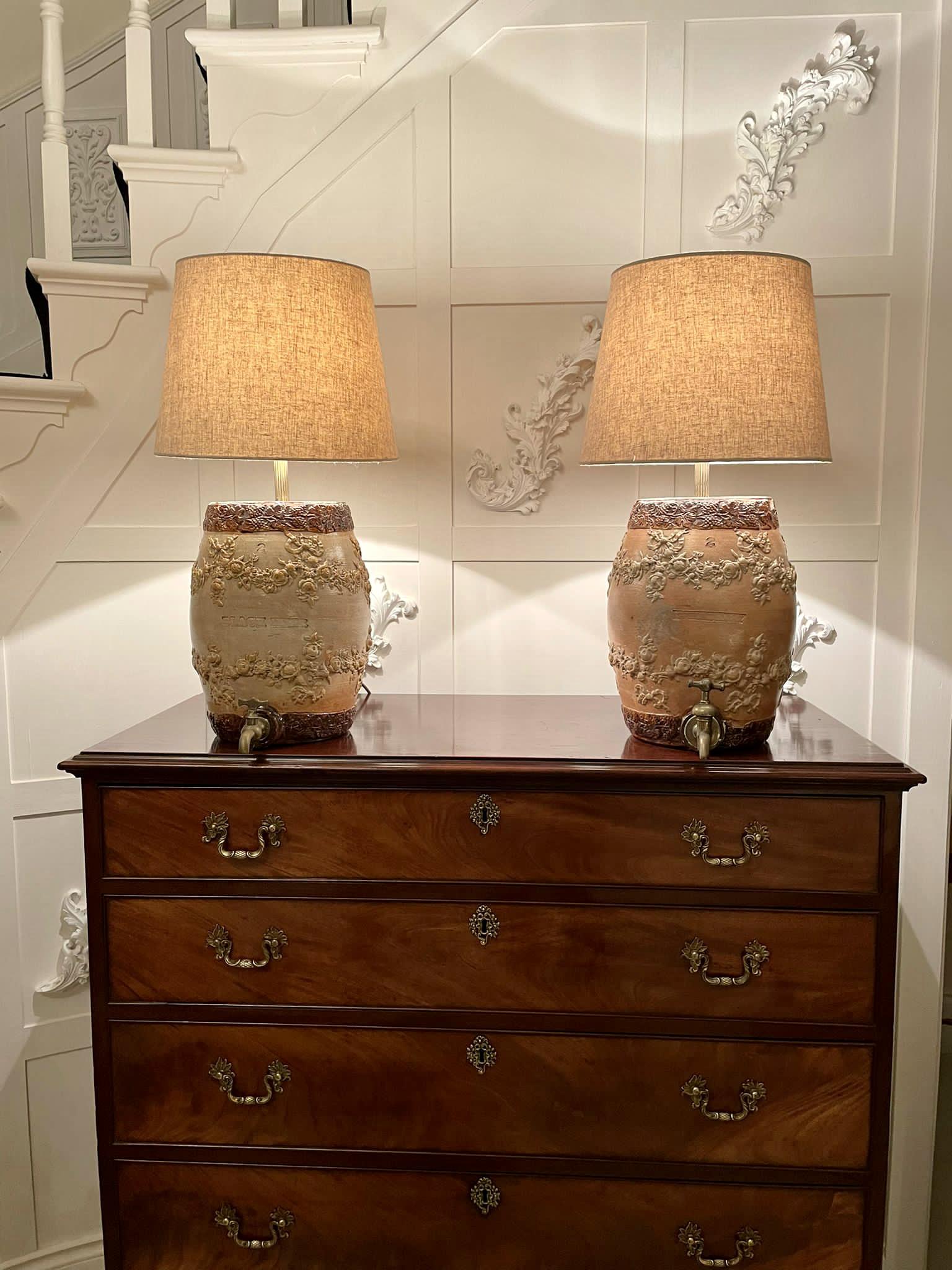 Pair of Antique Victorian Doulton Barrel Lamps