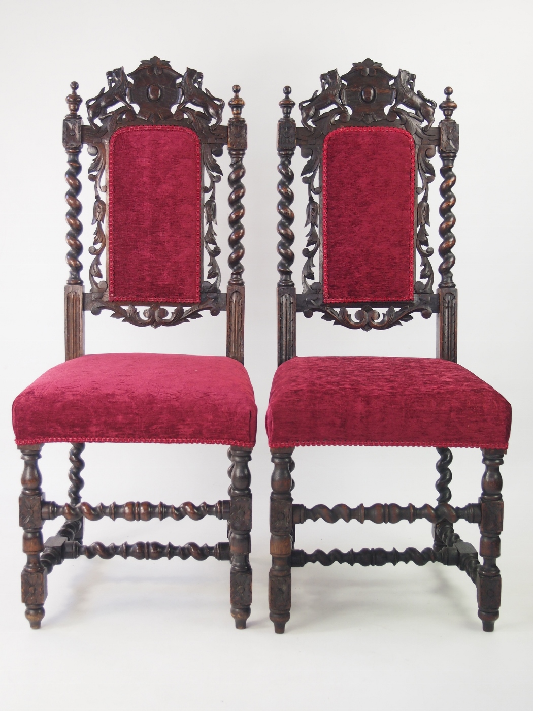 Pair of Antique Victorian Gothic Oak Chairs c.1890 (1 of 1)