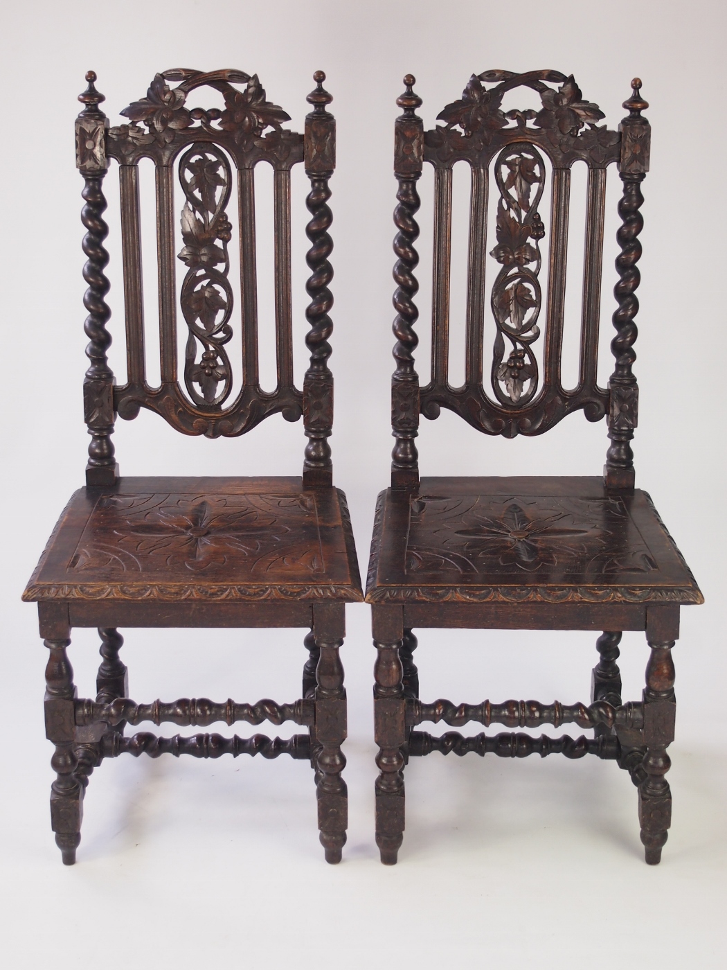 Pair of Antique Victorian Gothic Oak Hall Chairs c.1890