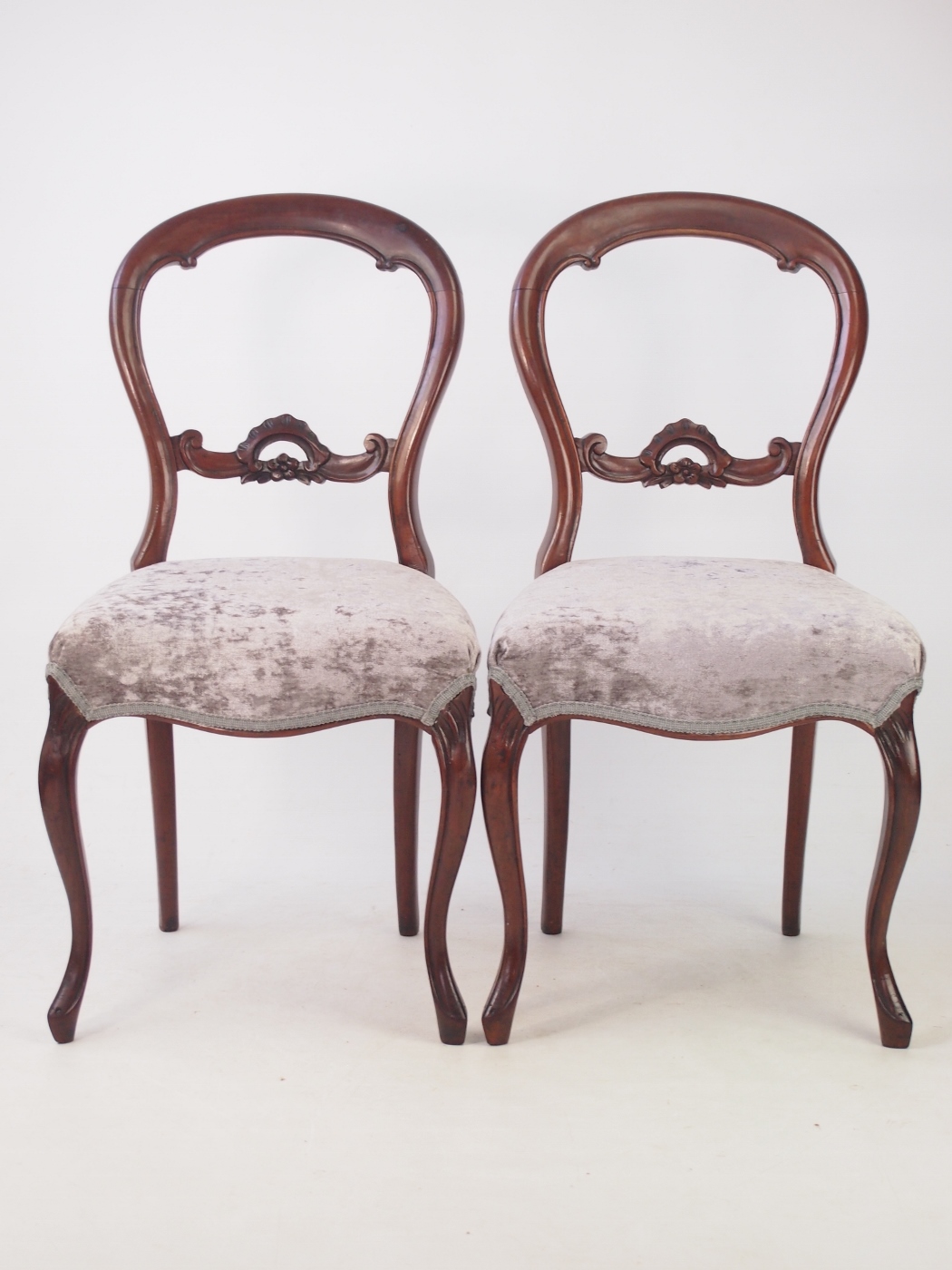 Pair of Antique Victorian Mahogany Balloon Back Chairs