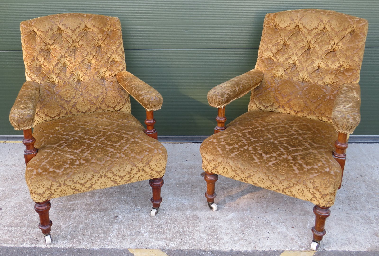 Pair of Antique Victorian Oak-Framed Easy Chairs