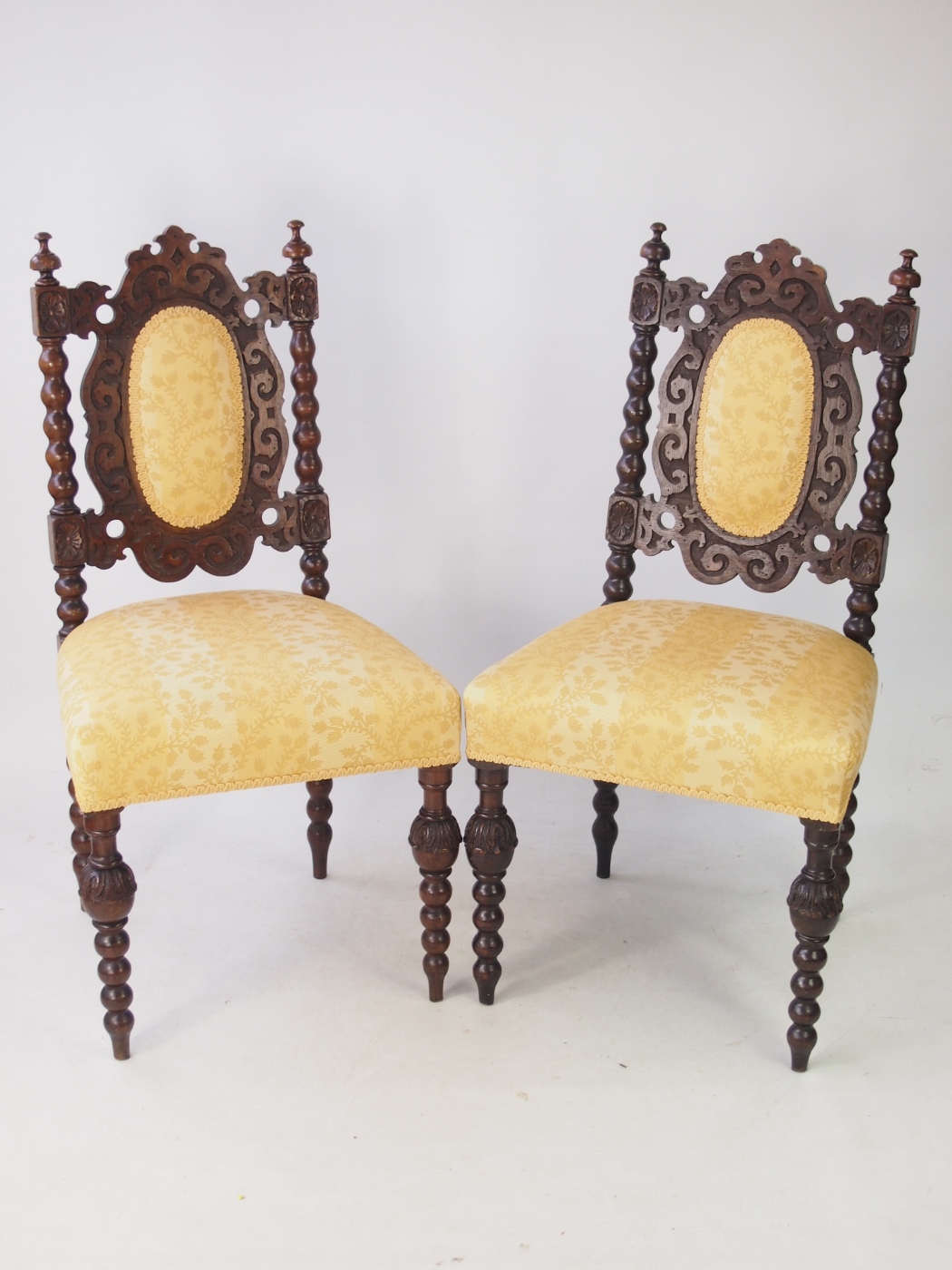 Pair of Antique Victorian Oak Gothic Chairs c.1880