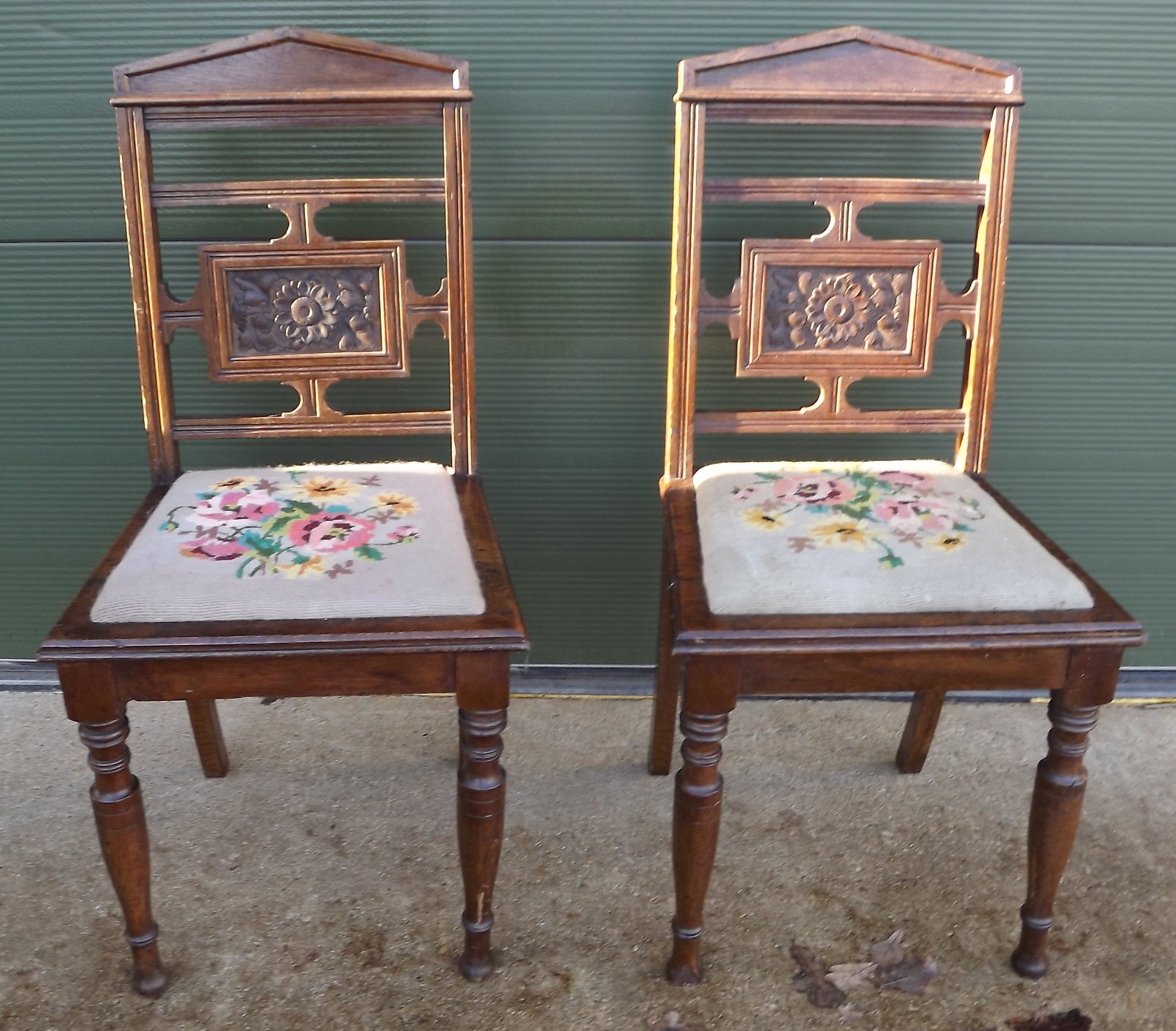 Pair of Antique Victorian Oak Hall Chairs
