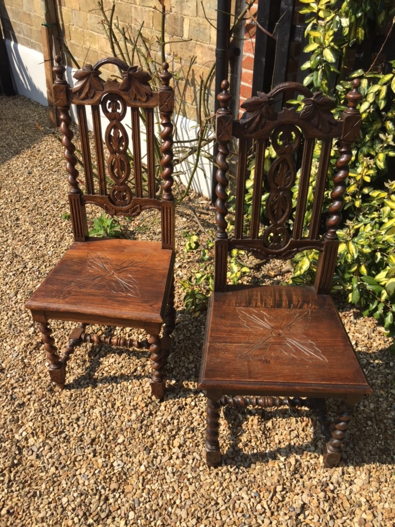 Pair of Antique Victorian Oak Hall or Dining Chairs
