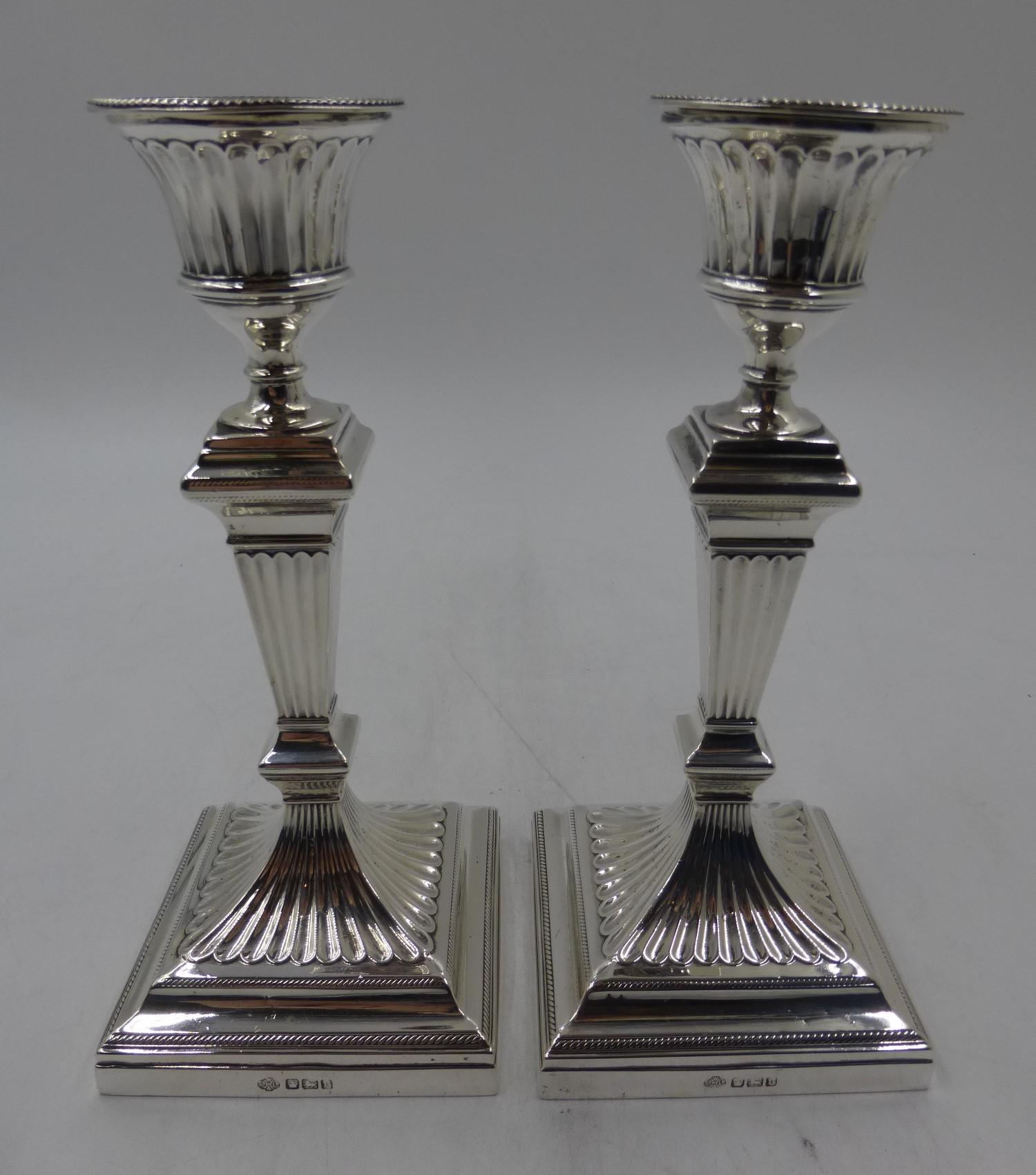 Pair of Antique Victorian Silver Candlesticks Sheffield 1896