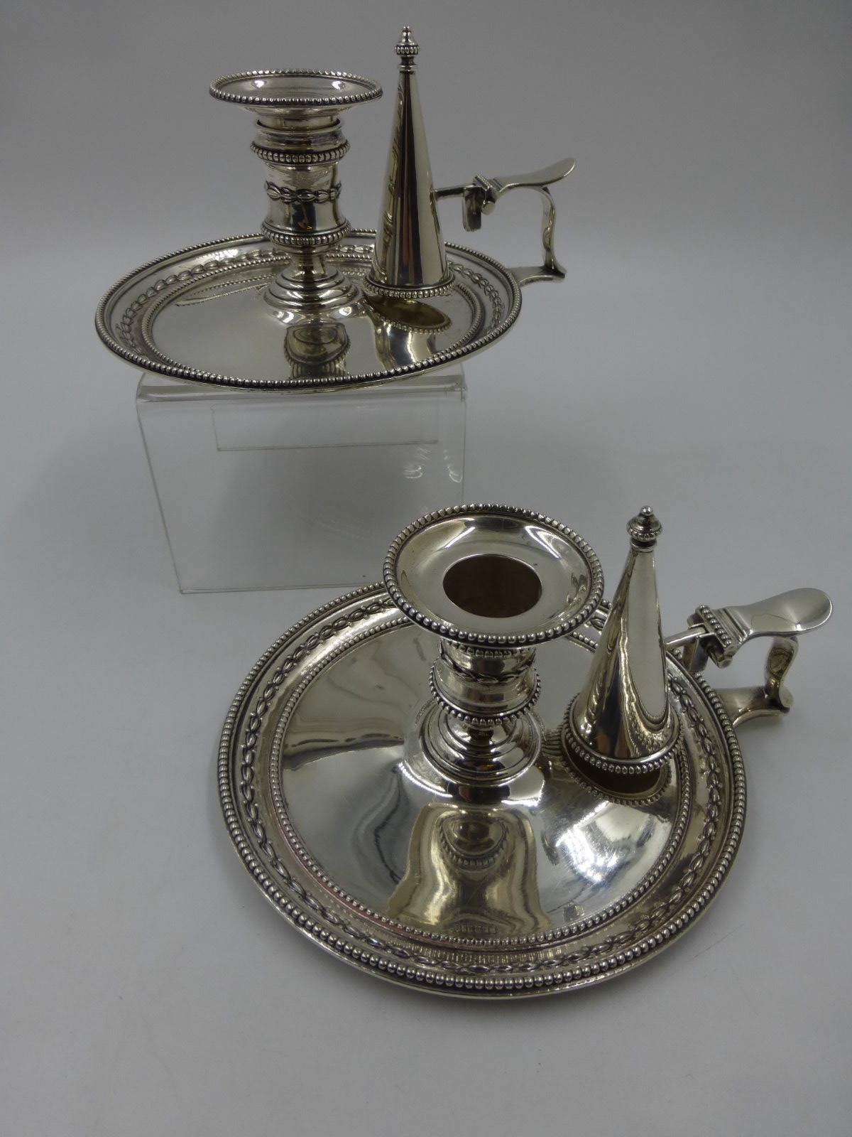 Pair of Antique Victorian Silver Chambersticks, London 1860