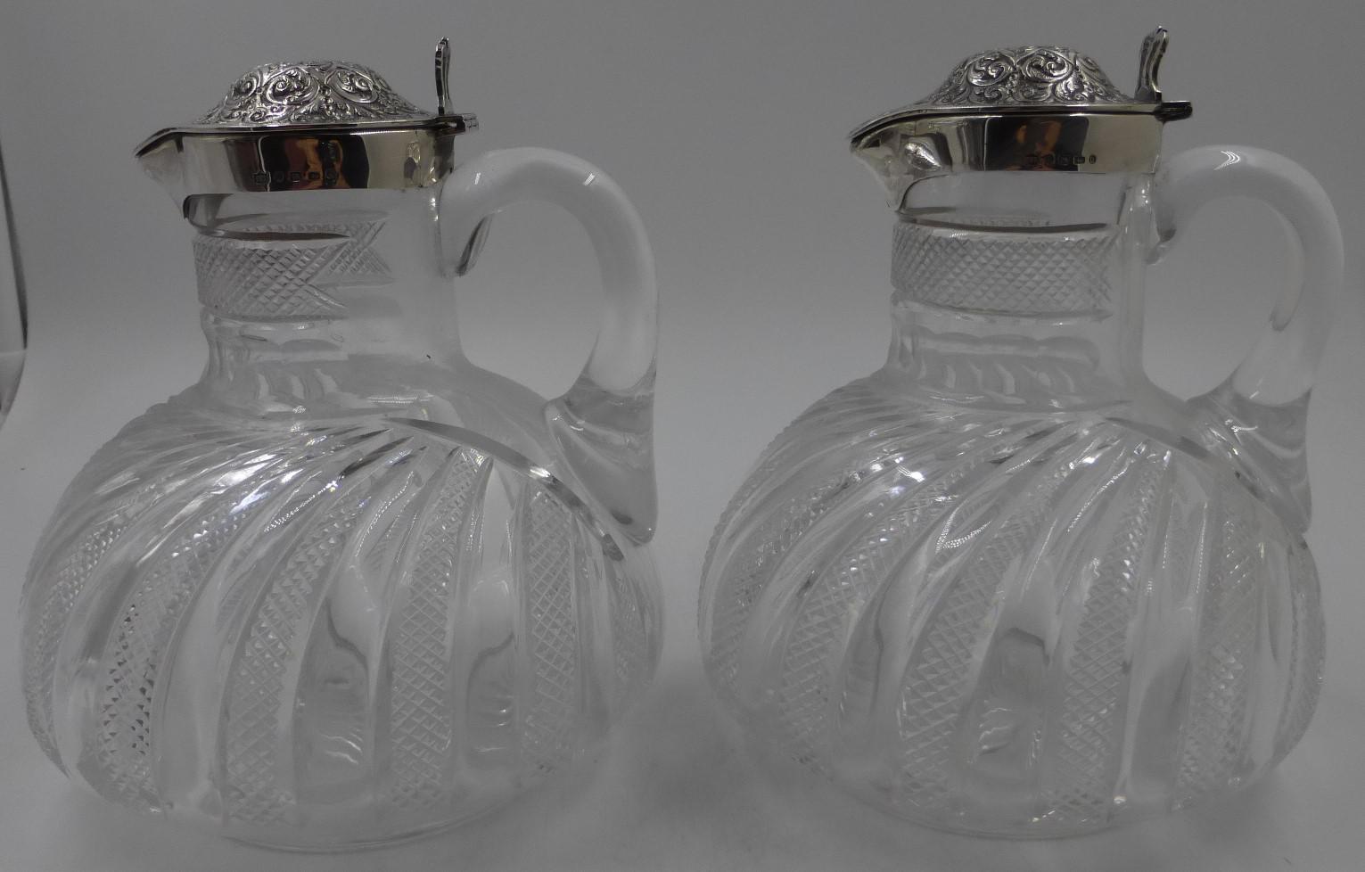 Pair of Antique Victorian Silver Mounted Claret Jugs. Birmingham 1888