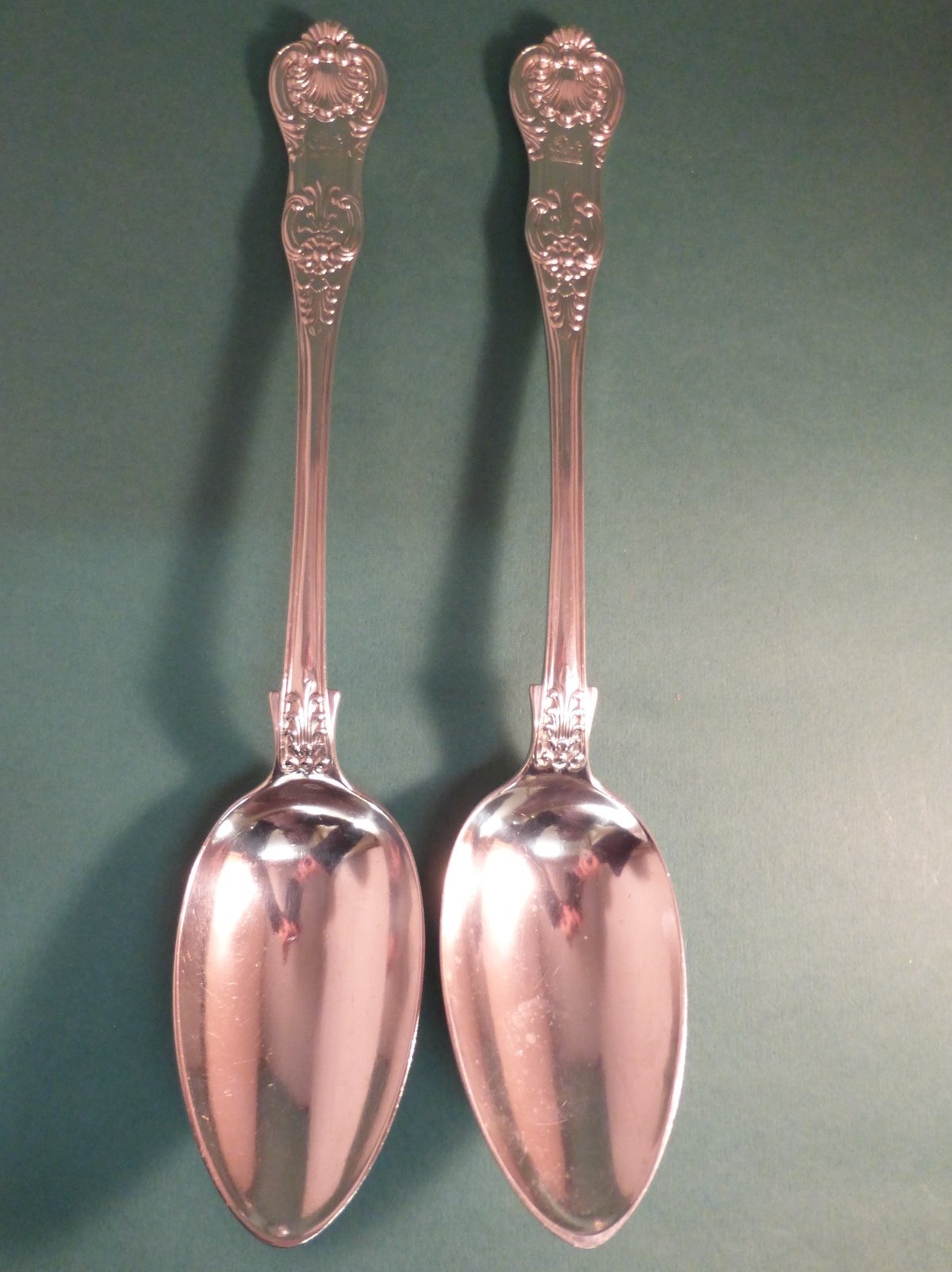 Pair of Antique Victorian Silver Queens Pattern Basting Spoons London 1857