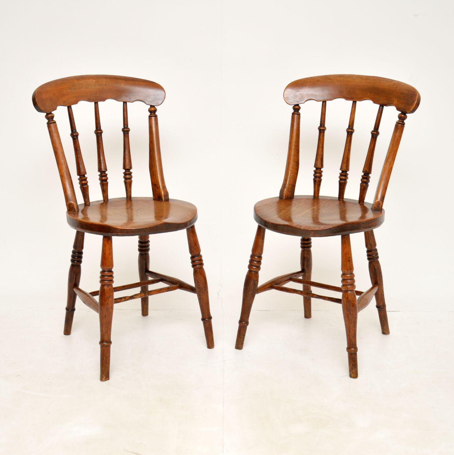Pair of Antique Victorian Solid Elm Dining / Side Chairs (1 of 9)