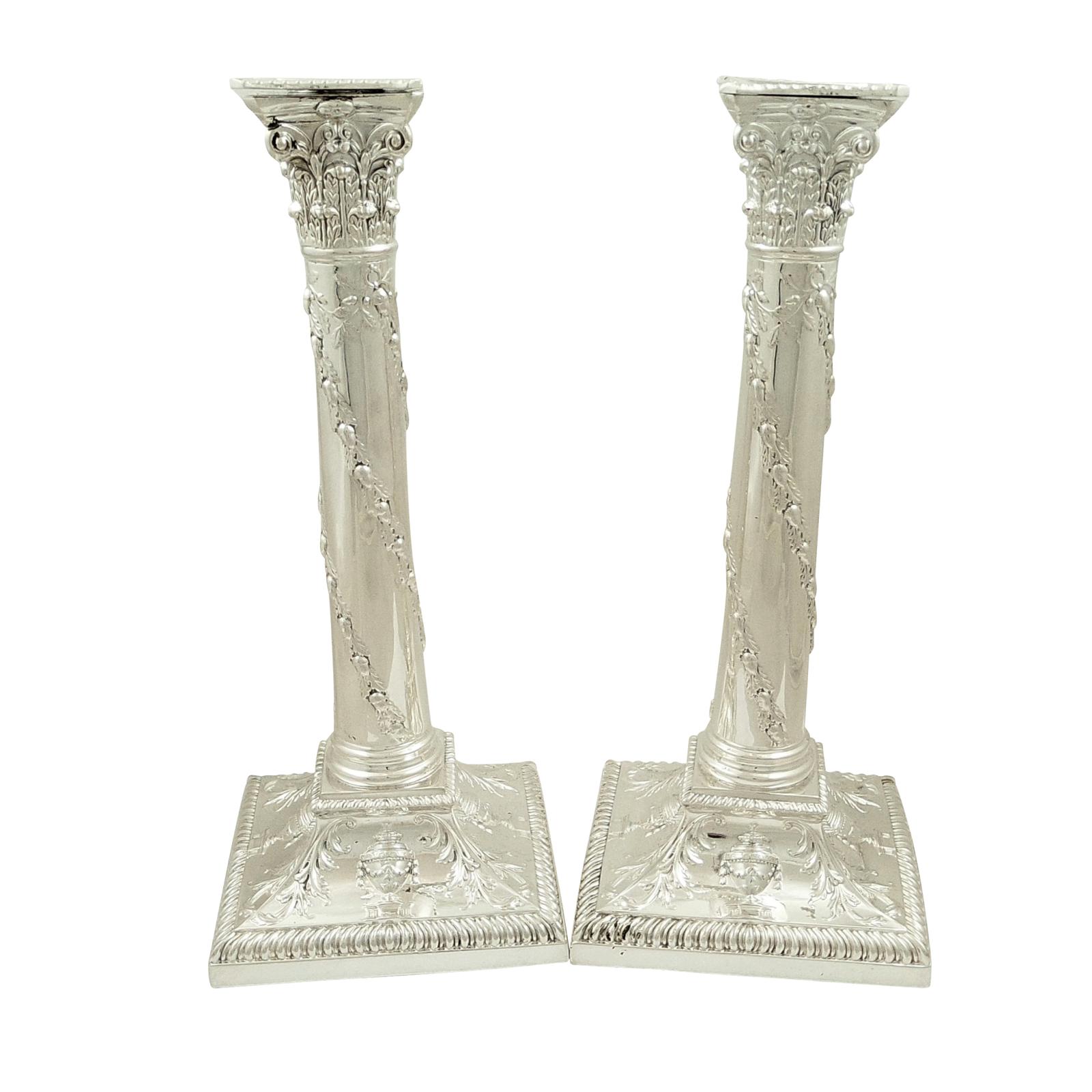 Pair of Antique Victorian Sterling Silver 10" Candlesticks 1898