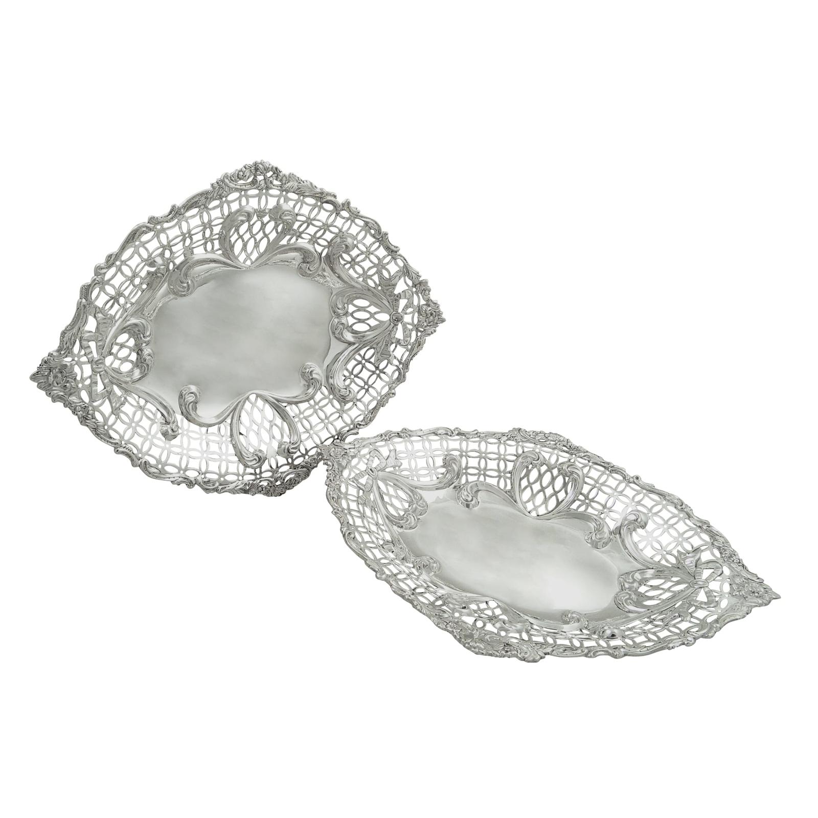 Pair of Antique Victorian Sterling Silver 11 1/2" Dishes / Bowls 1891/1894