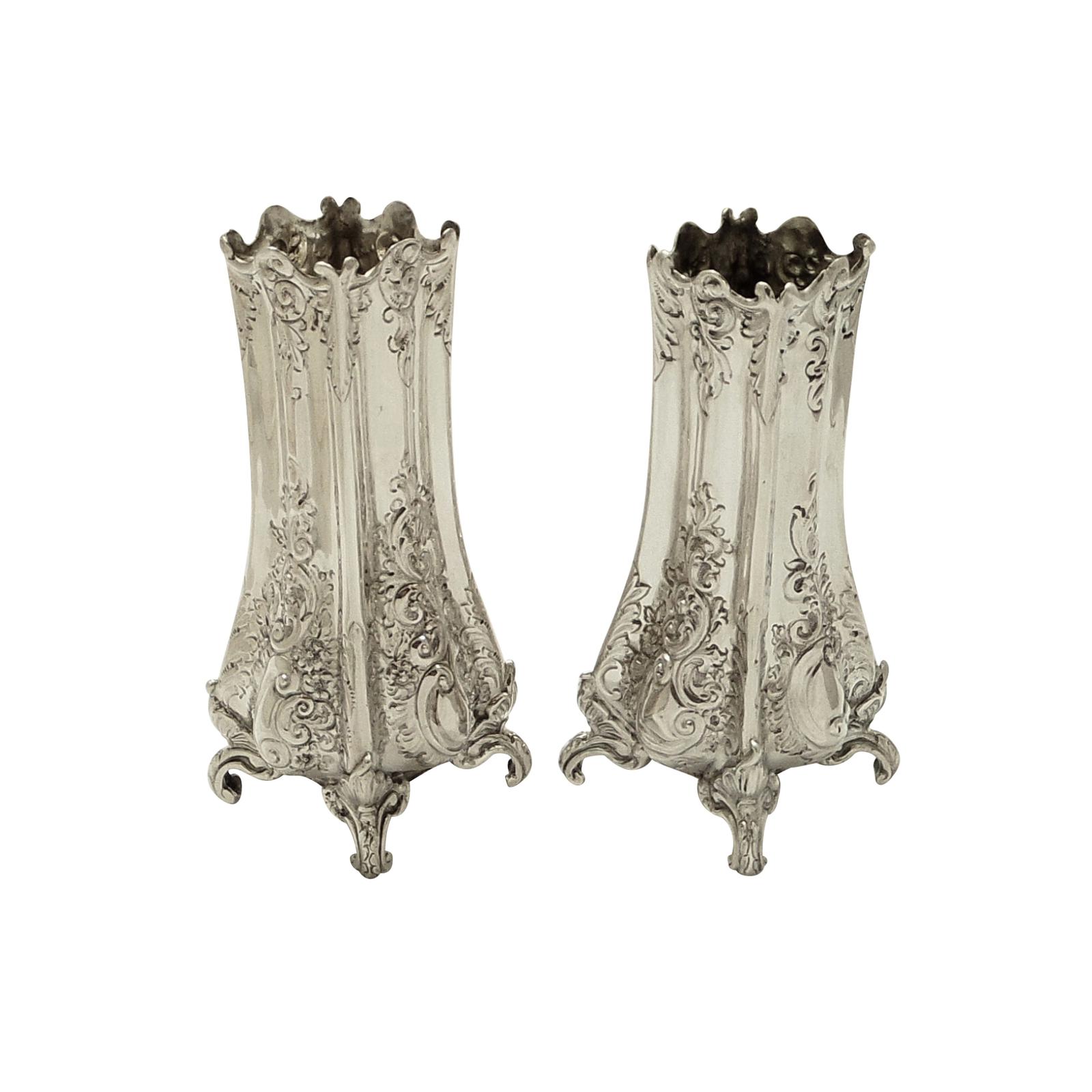 Pair of Antique Victorian Sterling Silver 5 1/2" Vases 1895/1896