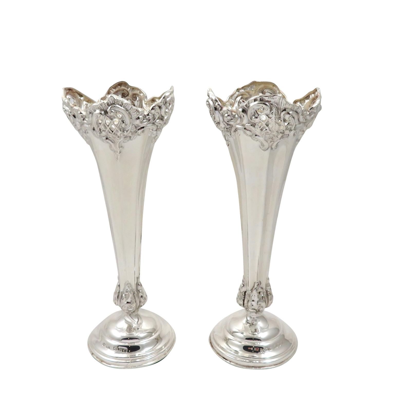 Pair of Antique Victorian Sterling Silver 6" Vases 1896
