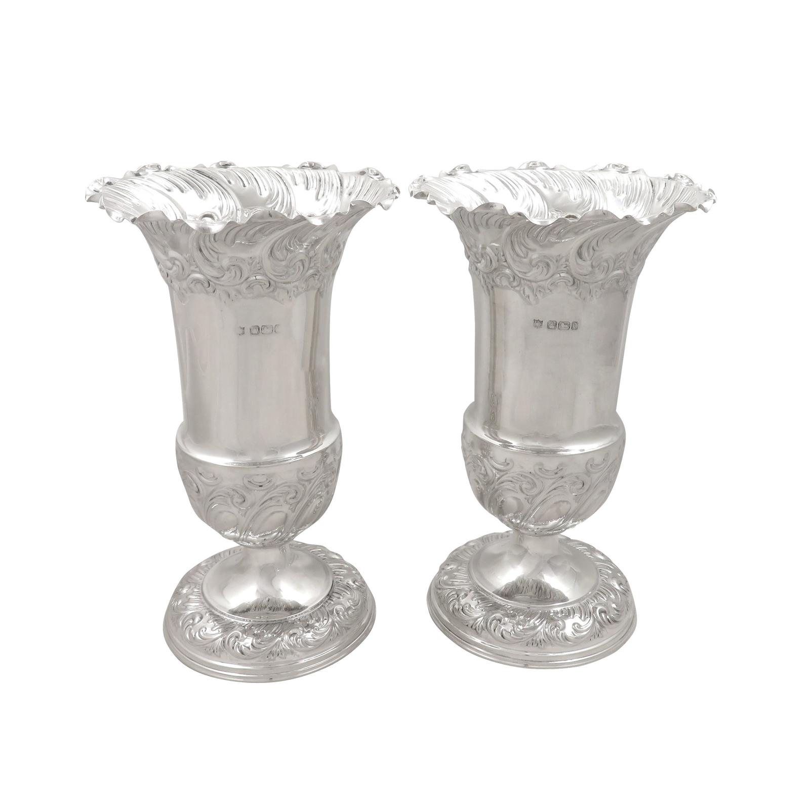 Pair of Antique Victorian Sterling Silver 7 1/2" Vases 1897