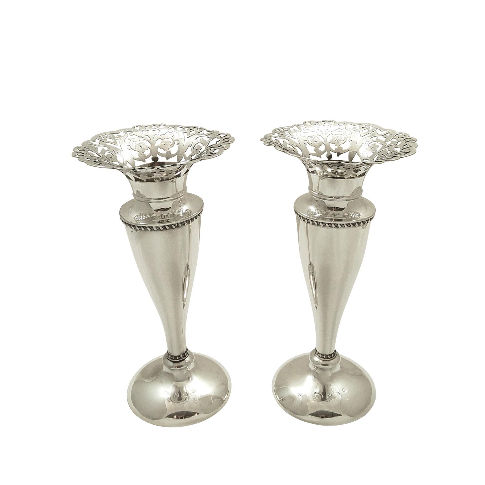 Pair of Antique Victorian Sterling Silver 7" Vases 1899