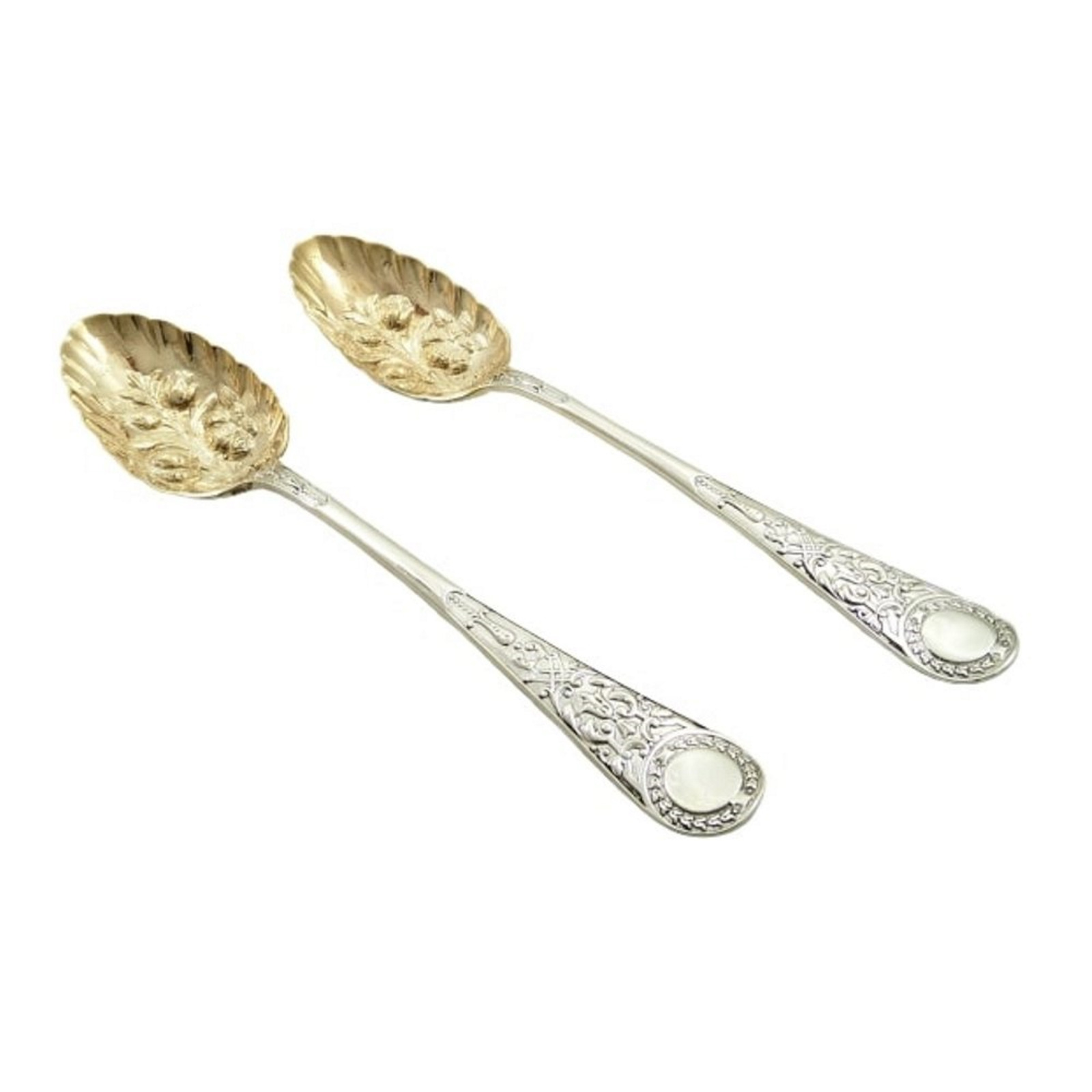 Pair of Antique Victorian Sterling Silver Berry Spoons 1891