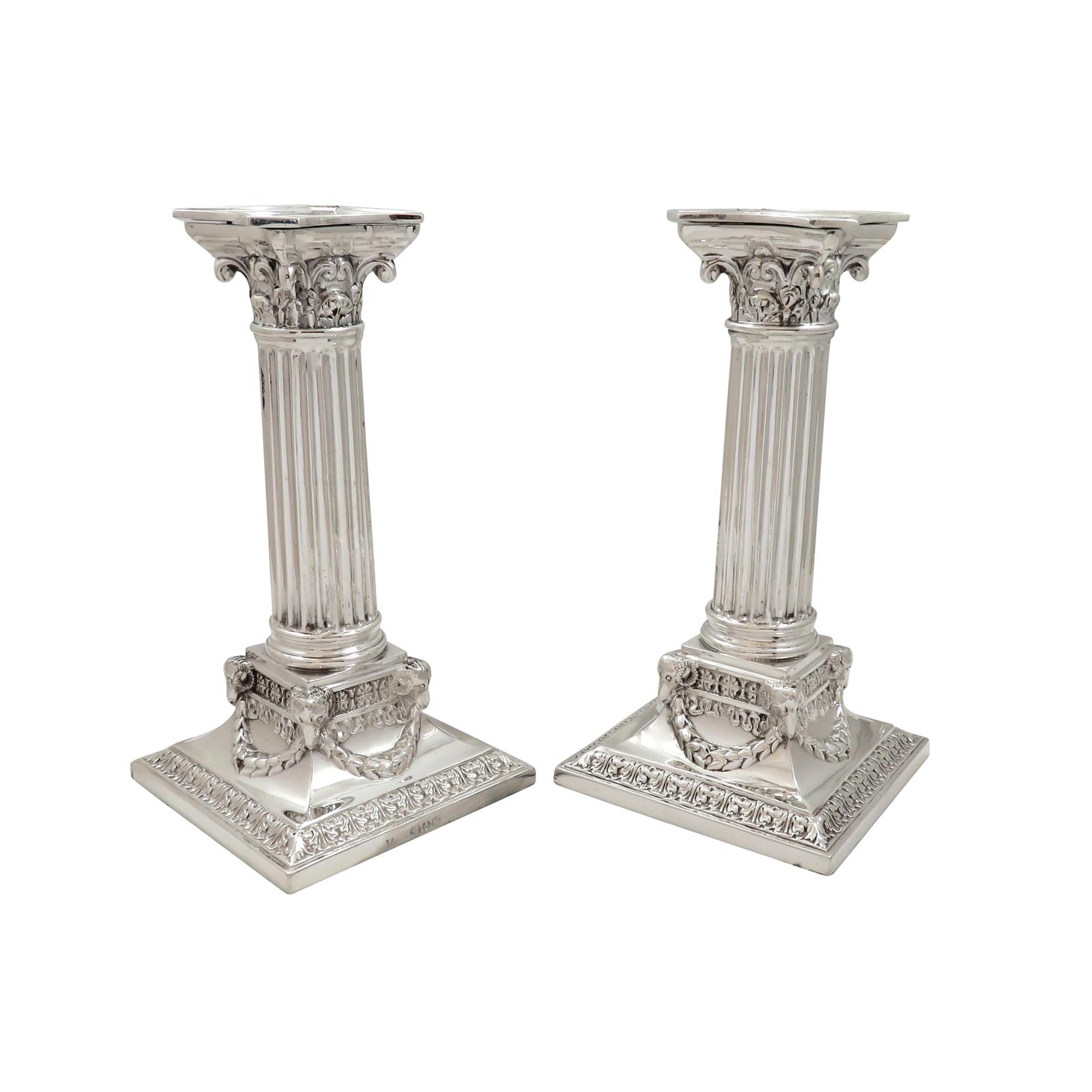 Pair of Antique Victorian Sterling Silver Candlesticks 1890