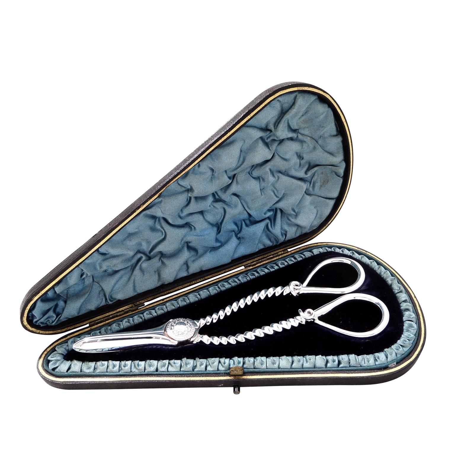 Pair of Antique Victorian Sterling Silver Grape Shears / Scissors in Case 1888