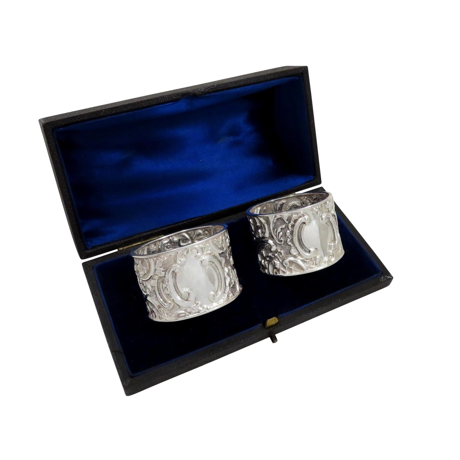 Pair of Antique Victorian Sterling Silver Napkin Rings in Case 1897