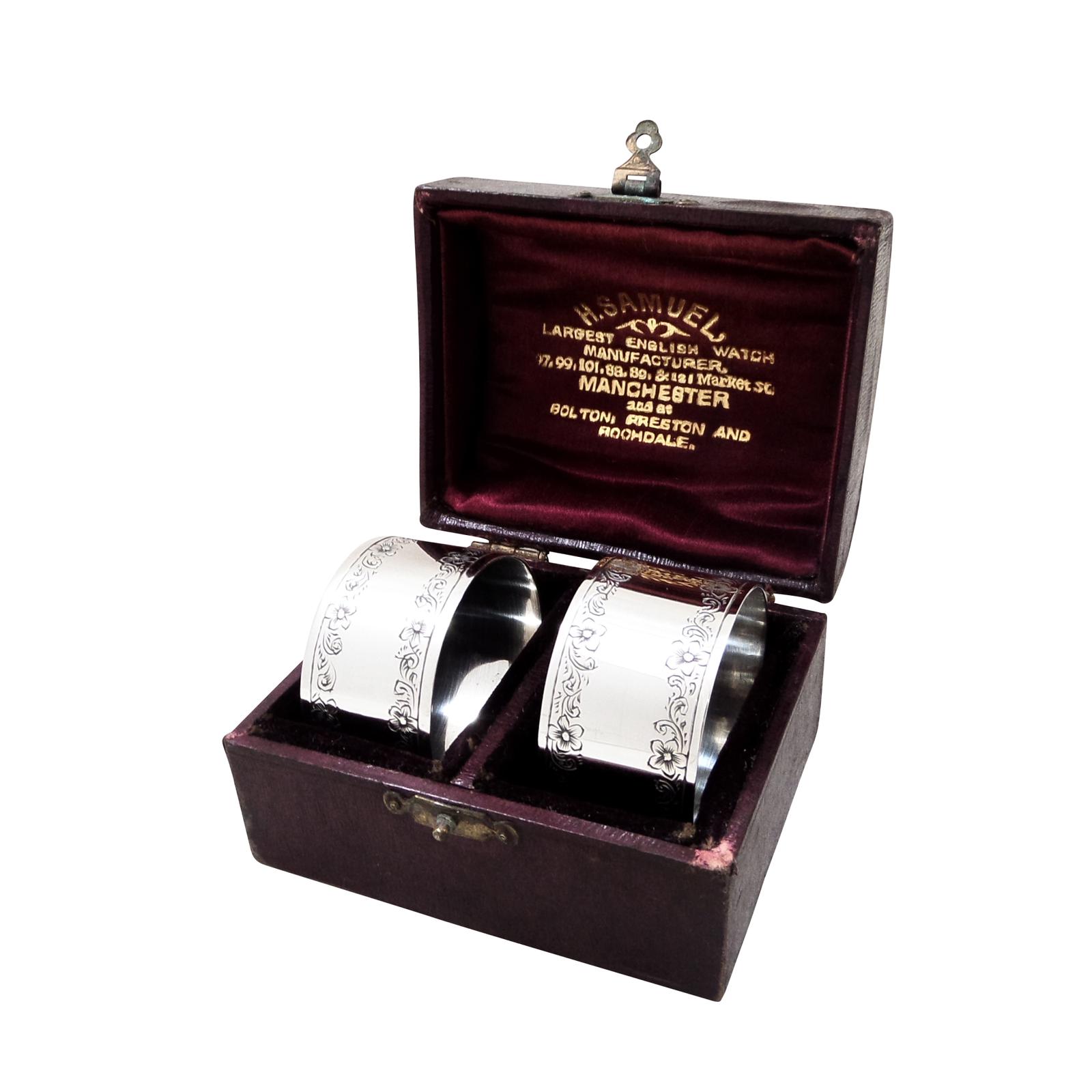 Pair of Antique Victorian Sterling Silver Napkin Rings in Case 1900
