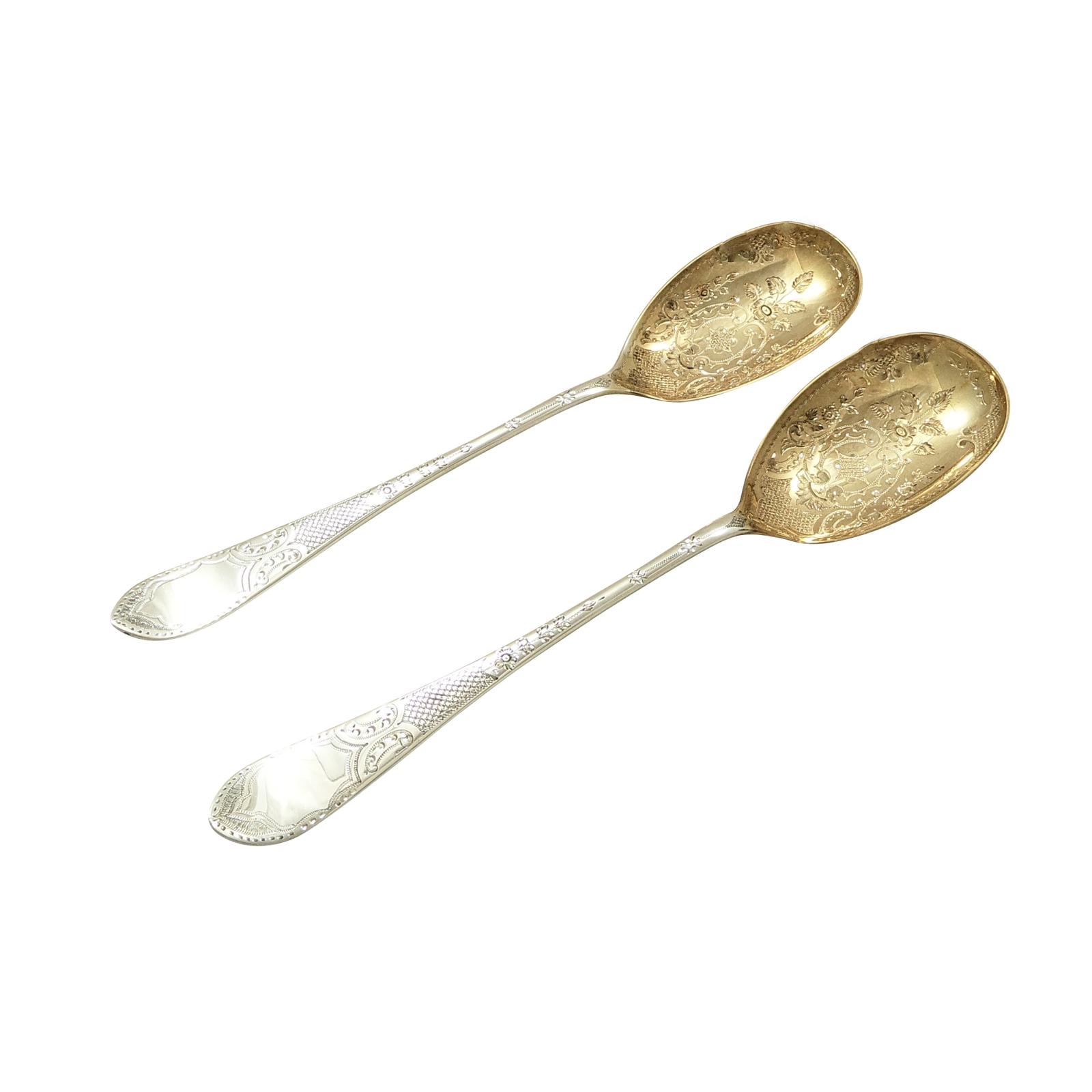 Pair of Antique Victorian Sterling Silver Serving Spoons 1900
