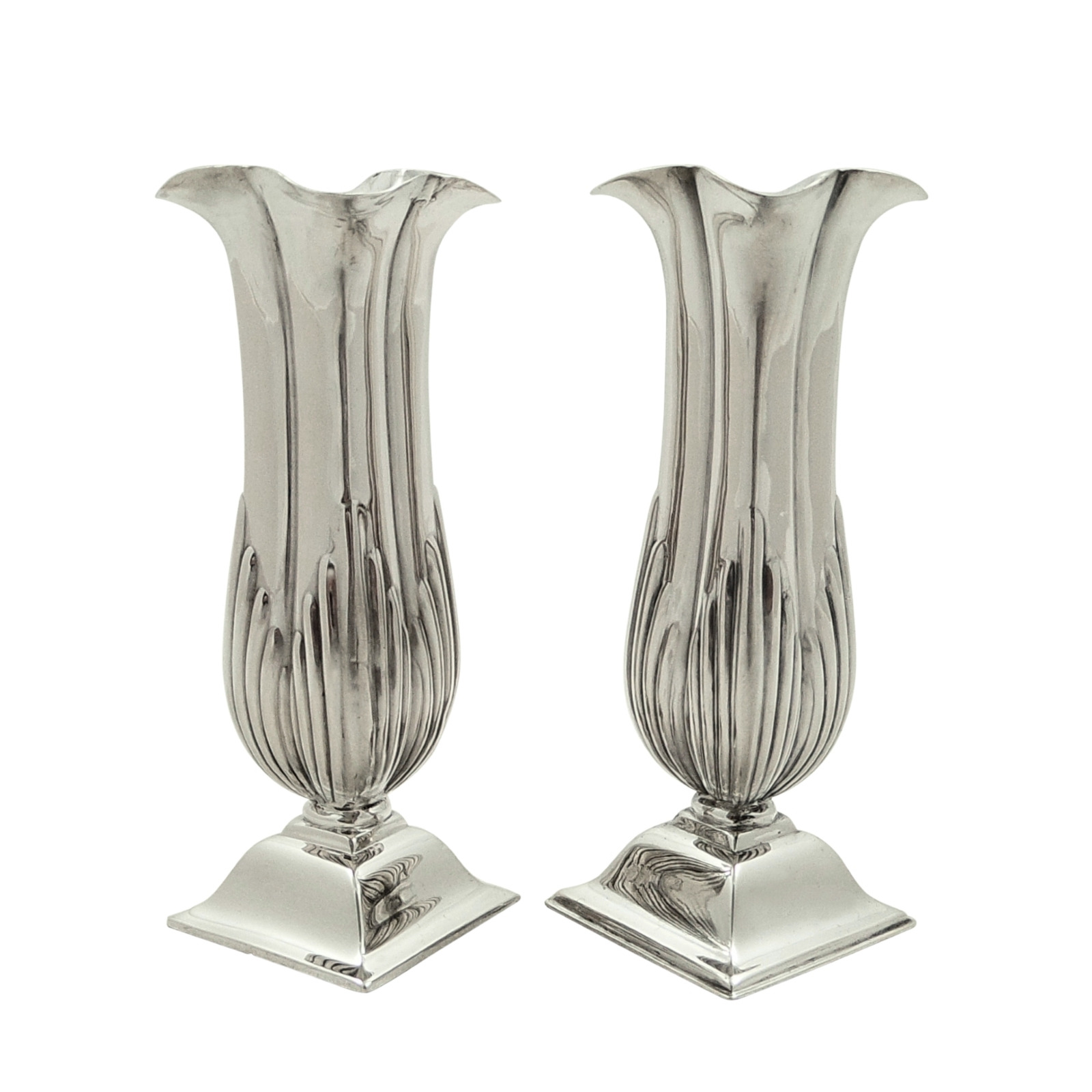 Pair of Antique Victorian Sterling Silver Vases 1873