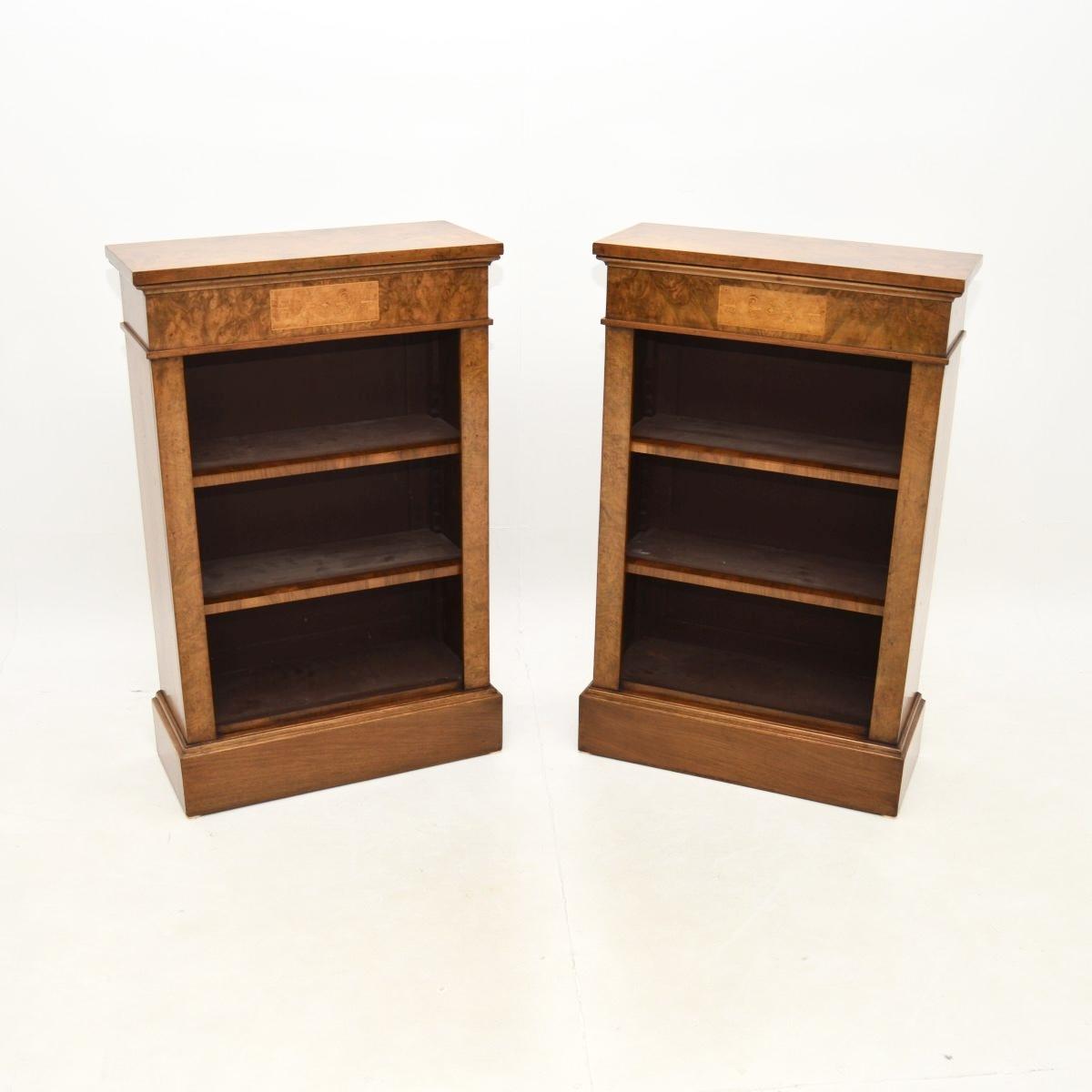 Pair of Antique Victorian Style Burr Walnut Open Bookcases (1 of 11)