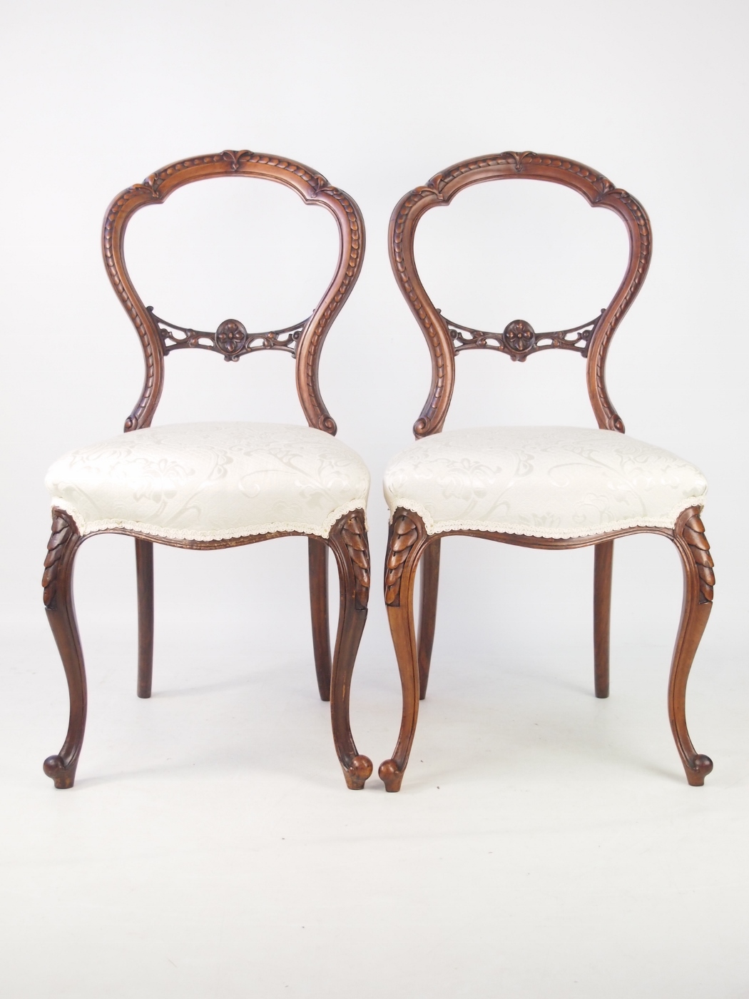 Pair of Antique Victorian Walnut Balloon Back Chairs (1 of 1)