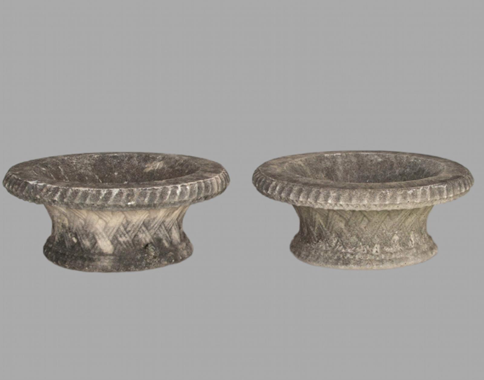 Pair Of Antique Vintage 20th Century Stone Urns Garden Planters