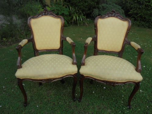 Pair of Antique Walnut Armchairs Fauteuils c.1900