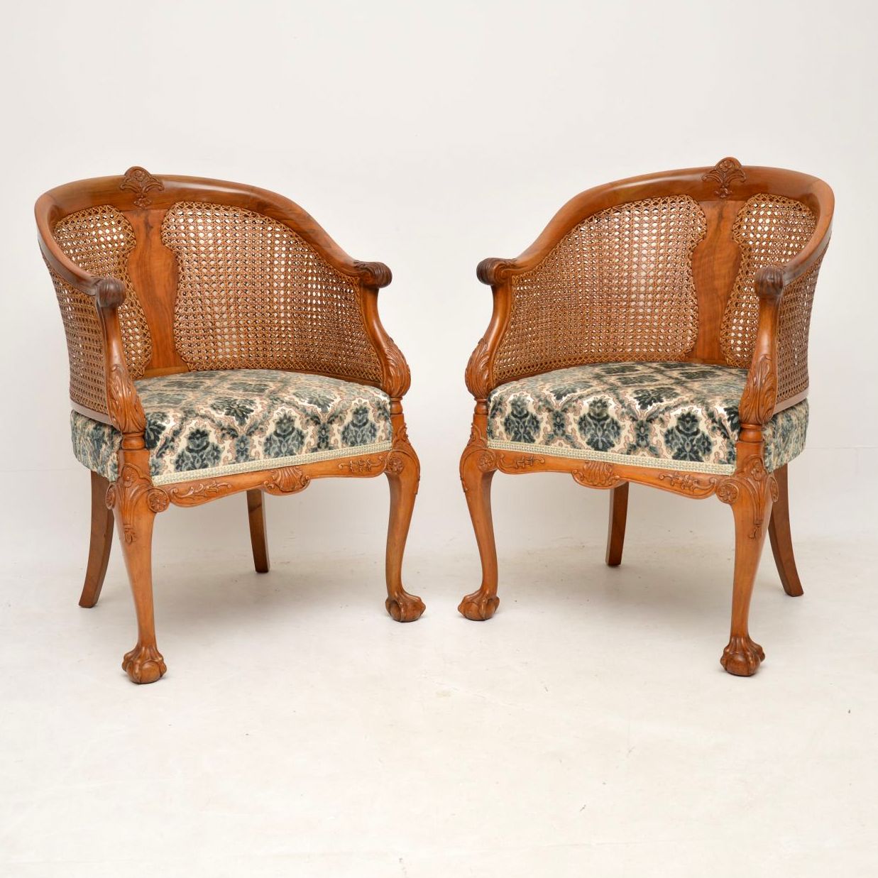 Pair of Antique Walnut Bergere Armchairs (1 of 1)