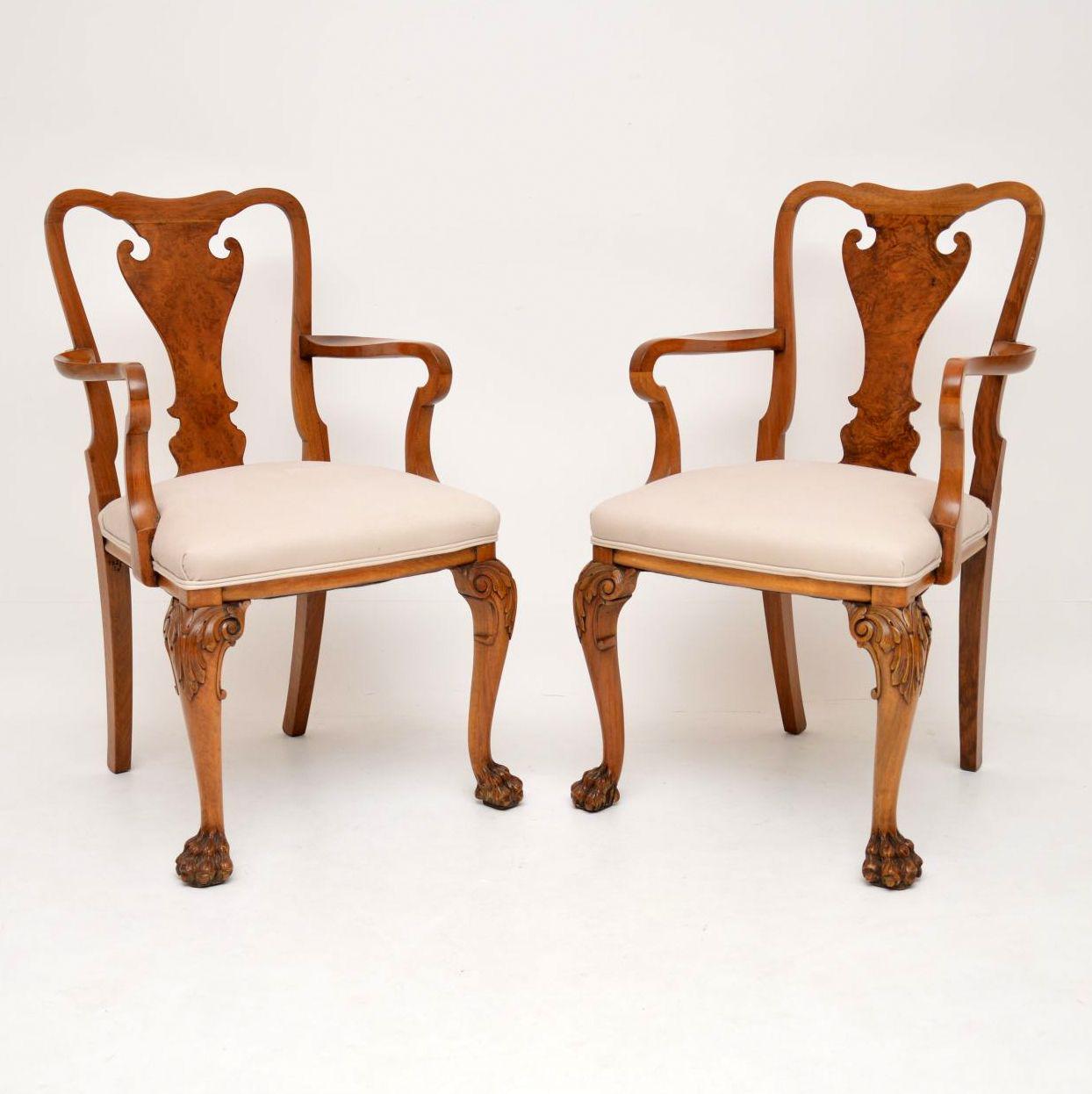 Pair of Antique Walnut Queen Anne Style Carver Armchairs (1 of 10)