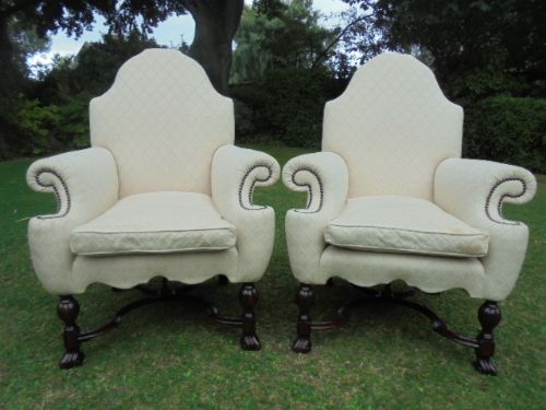 Pair of Antique Walnut Upholstered Queen Anne Style Armchairs c.1900