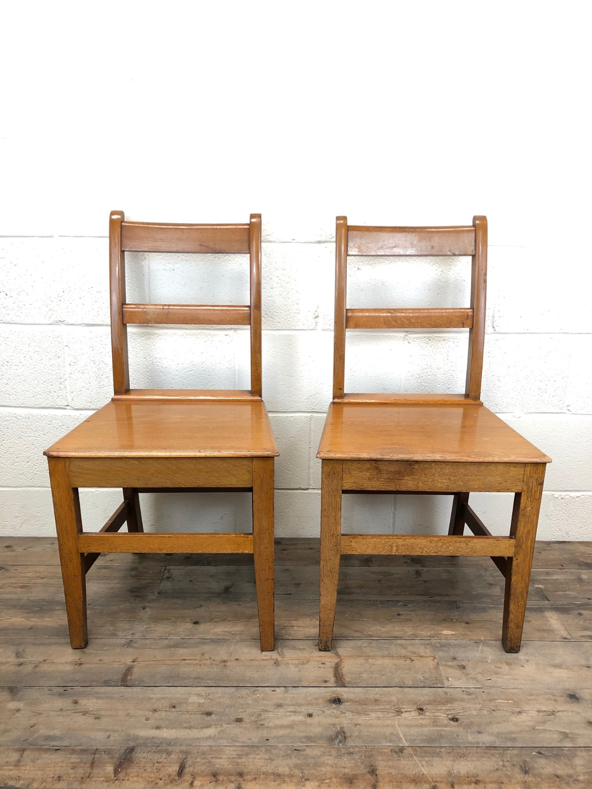 Pair of Antique Welsh Honey Oak Bar Back Farmhouse Chairs