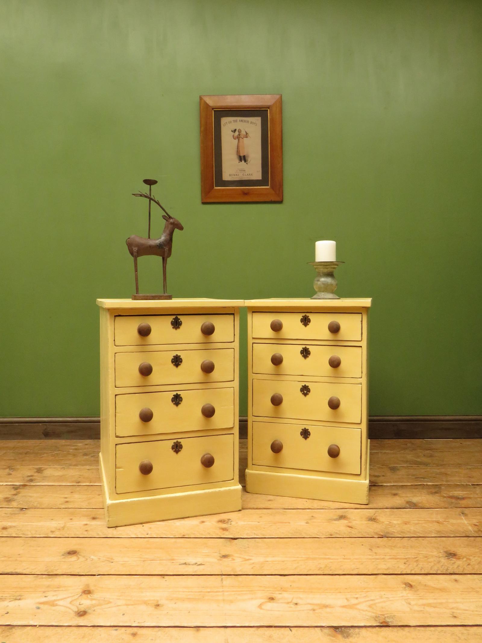 Pair of Antique Yellow Chest of Drawers, Bedside or Office Chests