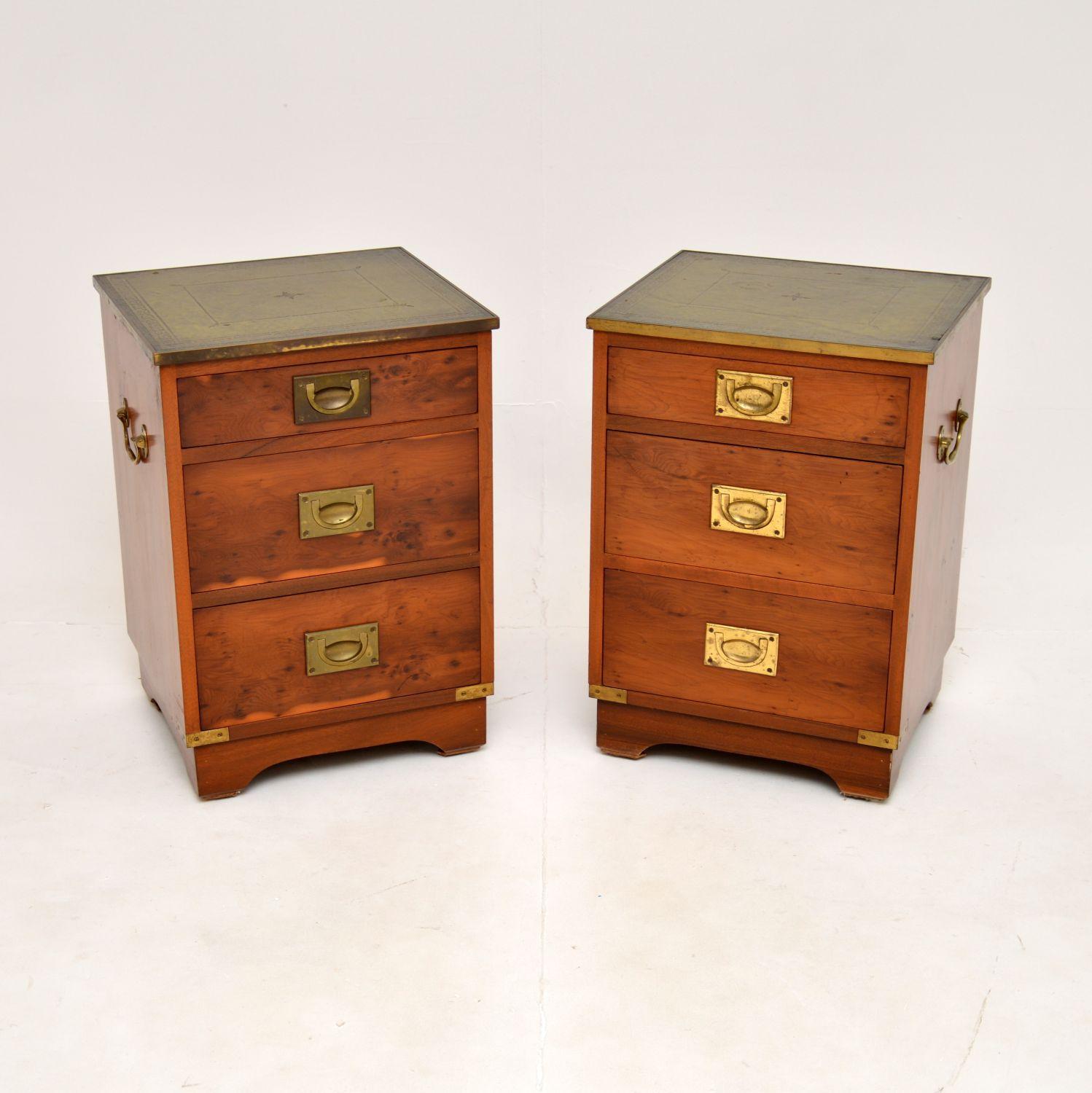 Pair of Antique Yew Wood Military Campaign Bedside Chests (1 of 9)