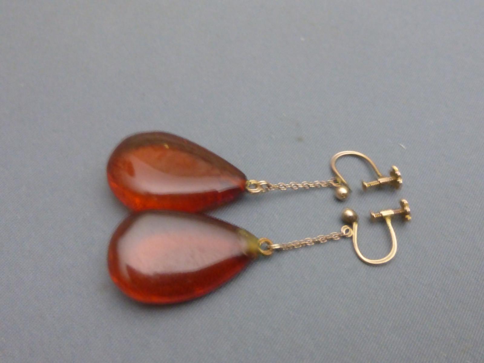 Pair of Art Deco 9ct Gold And Amber Screw Fitting, Drop Earrings