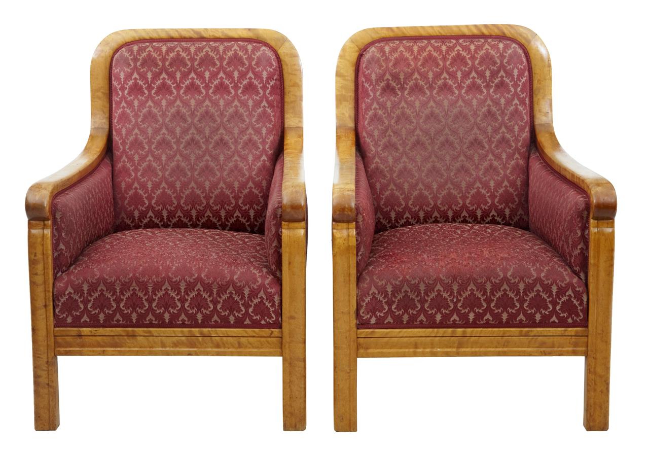 Pair of Art Deco Birch Lounge Armchairs c.1920