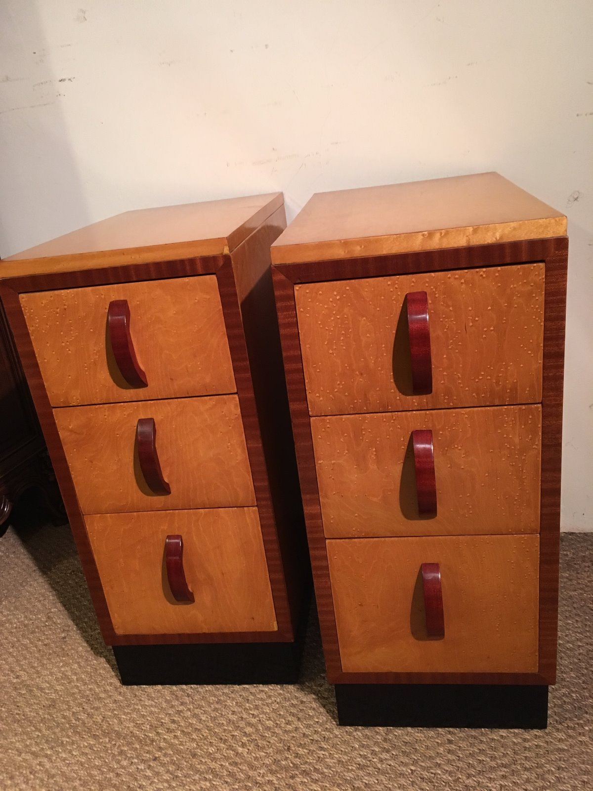 Pair of Art Deco Birdseye Maple Bedside Cabinets